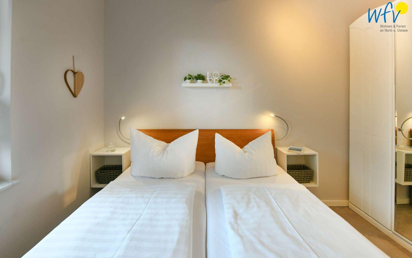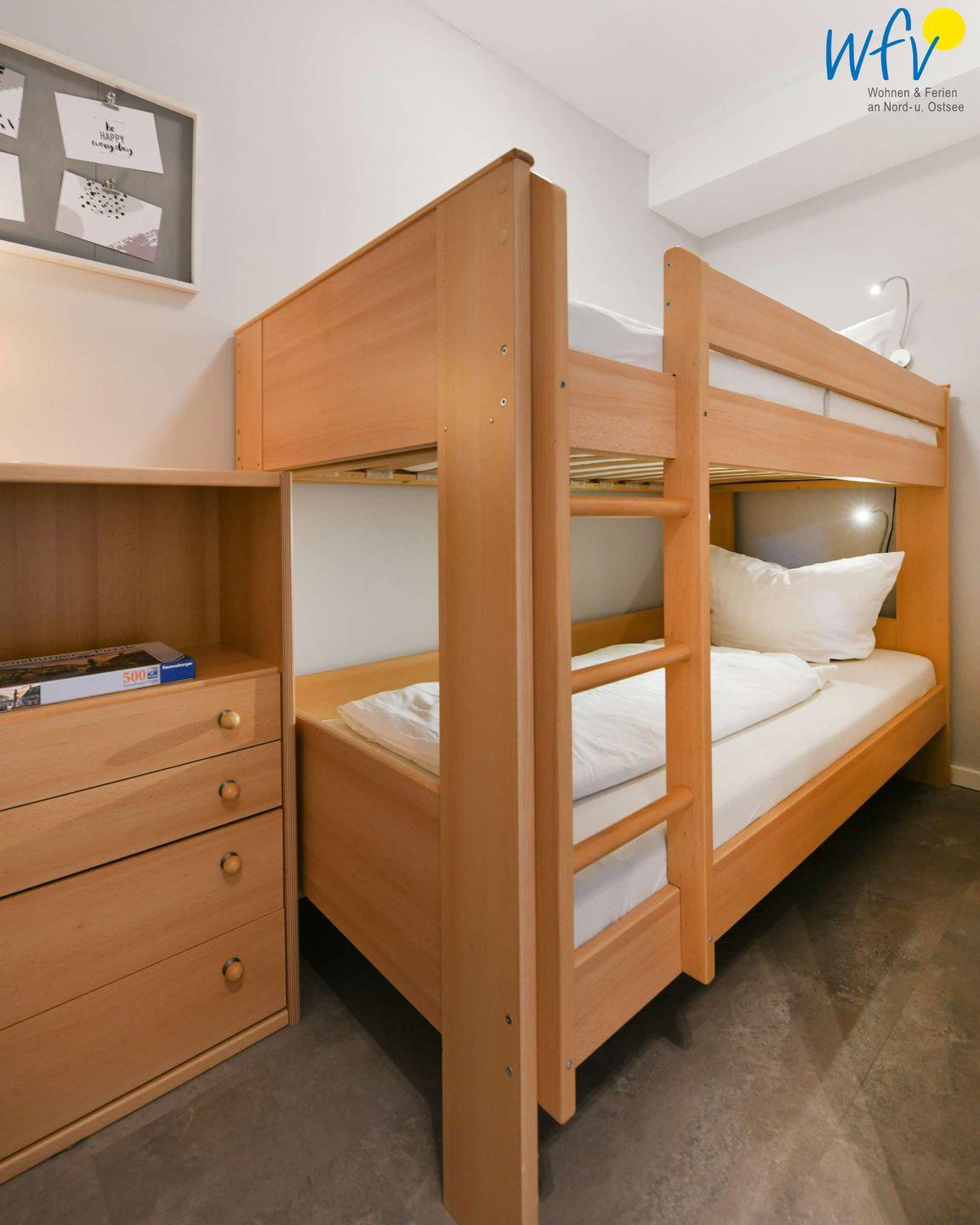 Herrlich ausschlafen können Sie in den zwei separaten Schlafzimmern. In dem Elternschlafzimmer befindet sich ein Doppelbett (160 x 200 cm), in dem Kinderzimmer ein Etagenbett (90 x 200 cm), das auch für einen Erwachsenen geeignet ist.