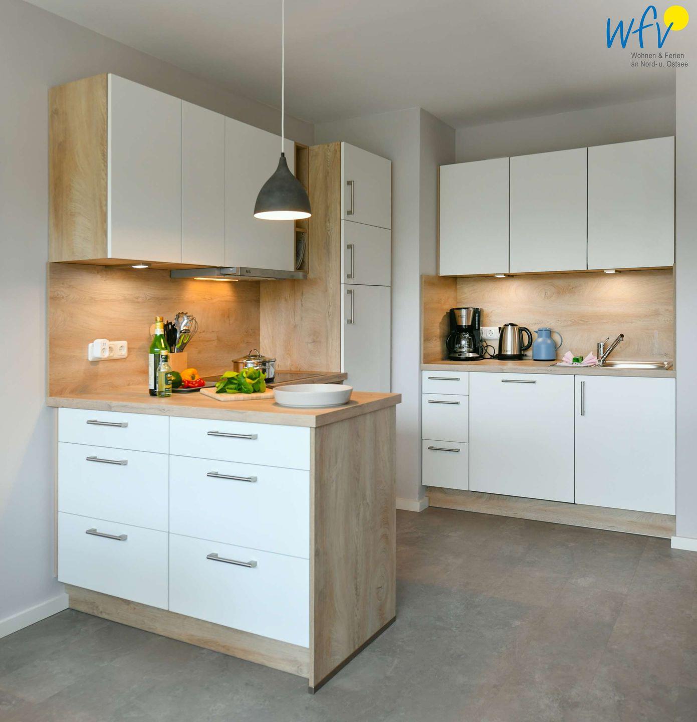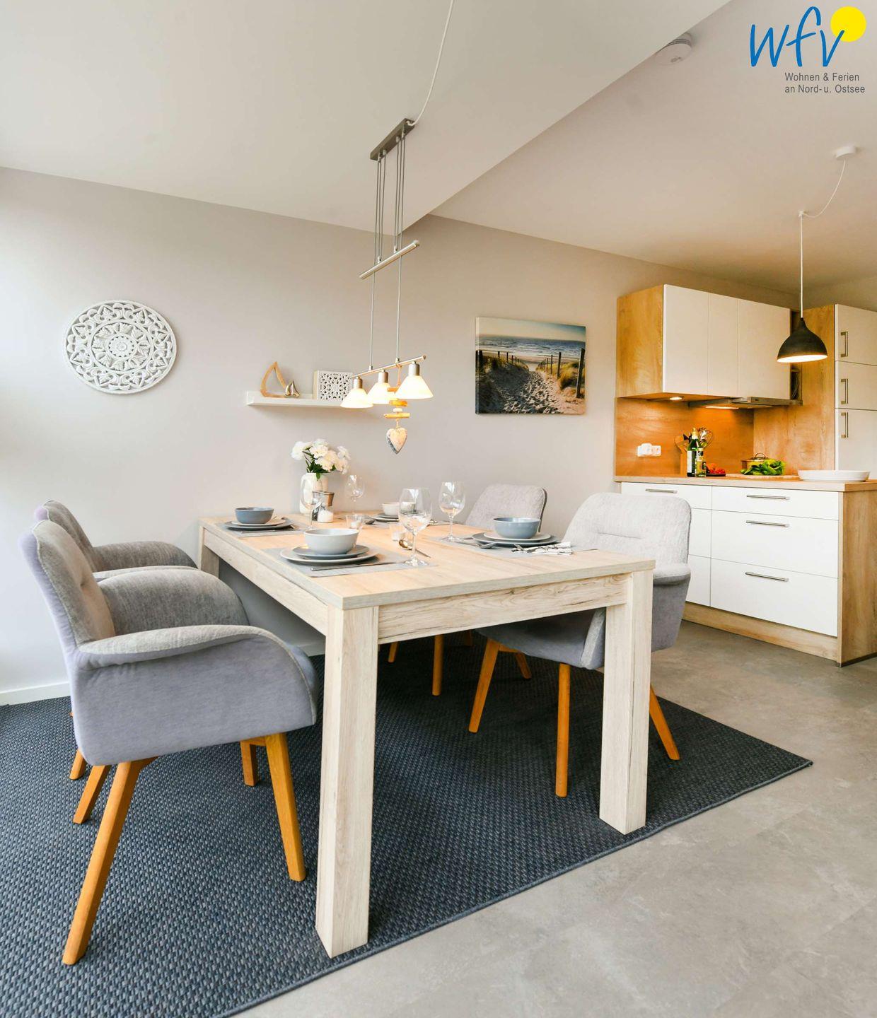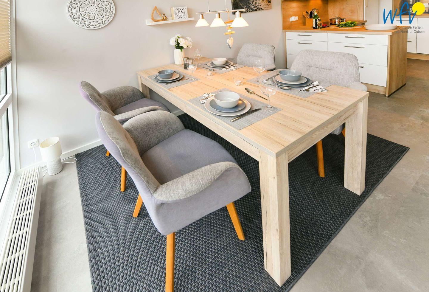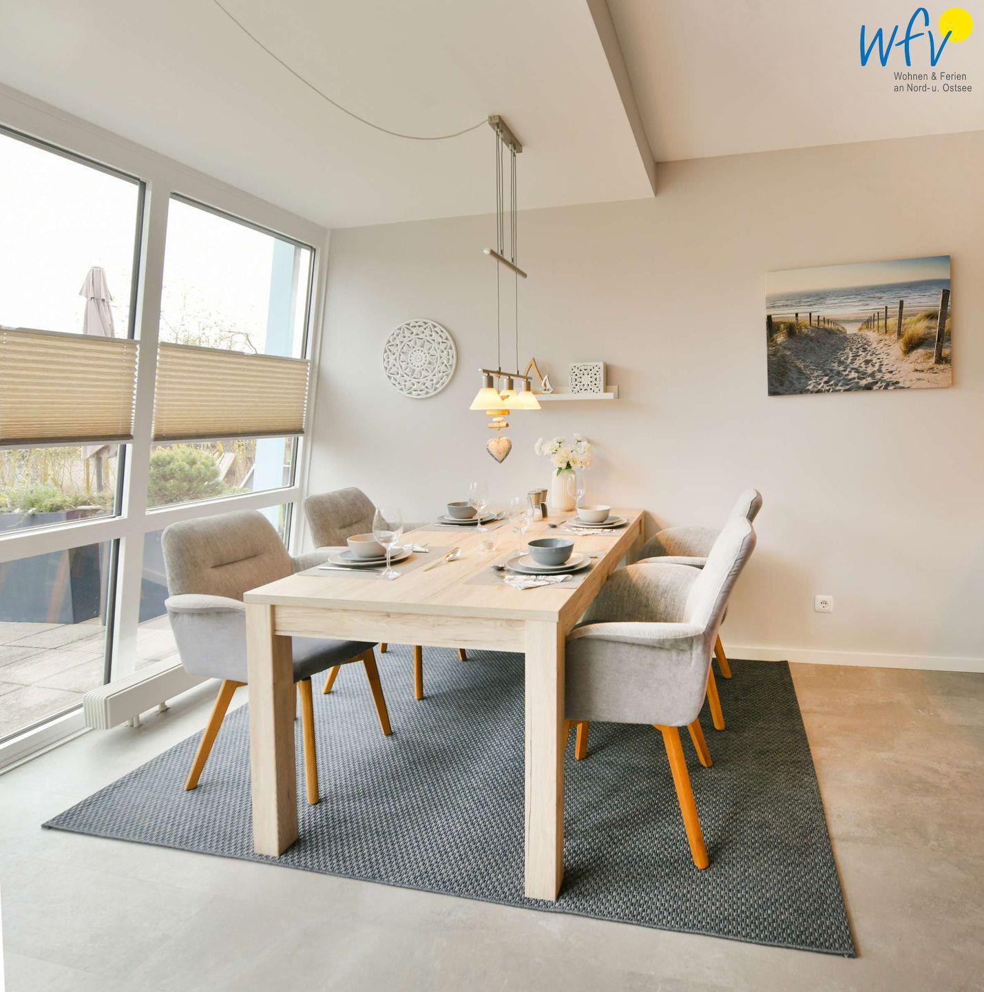 Die moderne Küche lässt Sie im Urlaub zu echten Gourmets werden. Während auf dem Ceranherd der frische Fisch brät, brutzeln im Backofen die Rosmarinkartoffeln. Den Abwasch erledigt anschließend die Spülmaschine. Die offene Küche ist direkt mit dem vollverglasten Wintergarten verbunden, der mit einem großen Esstisch zu geselligen Mahlzeiten einlädt. Inklusive schönem Blick nach draußen!