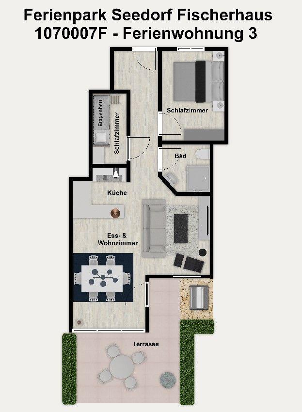 Herzlich willkommen in unserer "Ferienwohnung 3" im "Ferienpark Seedorf" in Sellin! In dieser modernen und gemütlichen Unterkunft mit Terrasse können Sie rundum entspannen. Zwei separate Schlafzimmer, eine offene Küche zum Wohnzimmer sowie eine Terrasse mit eingeschränktem Seeblick machen die Wohnung zu einem herrlichen Wohlfühlort auf Rügen. WLAN, ein Elektrogrill, Gemeinschaftswaschmaschine und Trockner sowie ein PKW-Stellplatz bieten weiteren Komfort. Wir wünschen Ihnen gute Erholung!