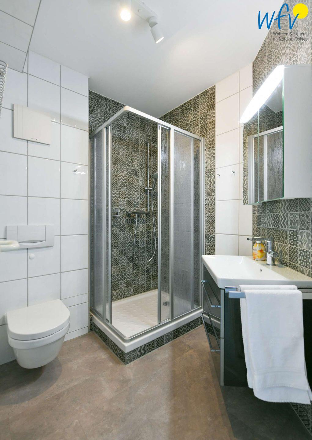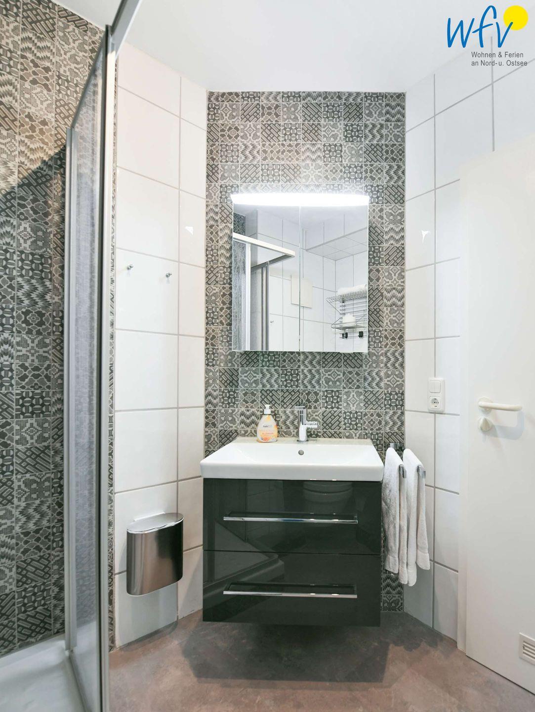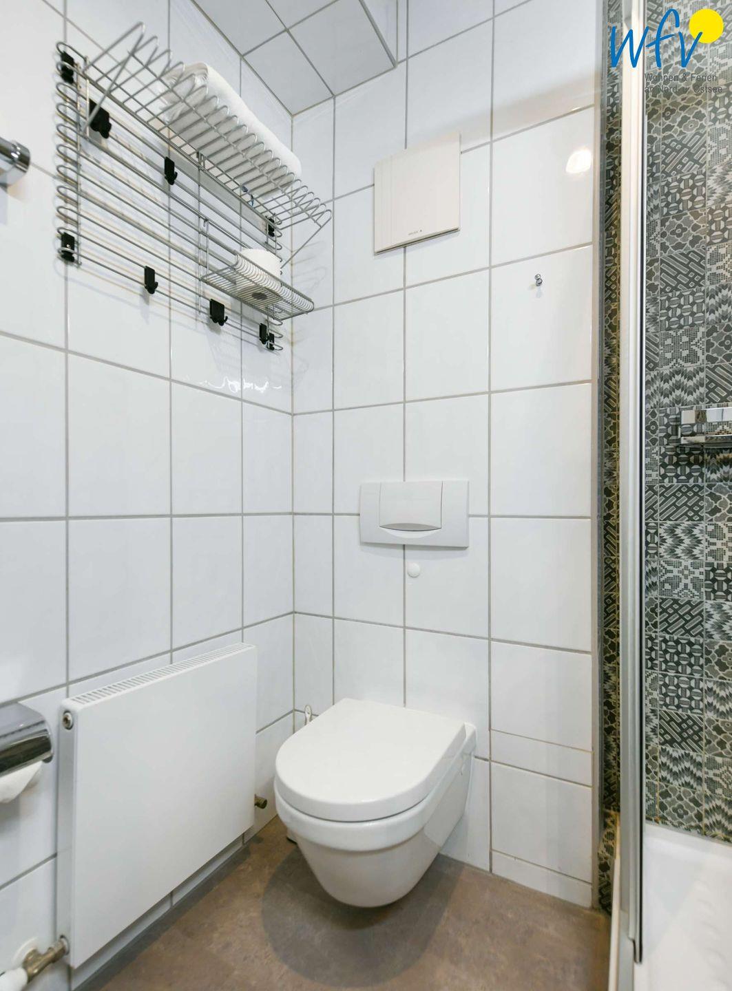 Das gepflegte Bad ist mit Dusche, WC und Waschbecken ausgestattet.