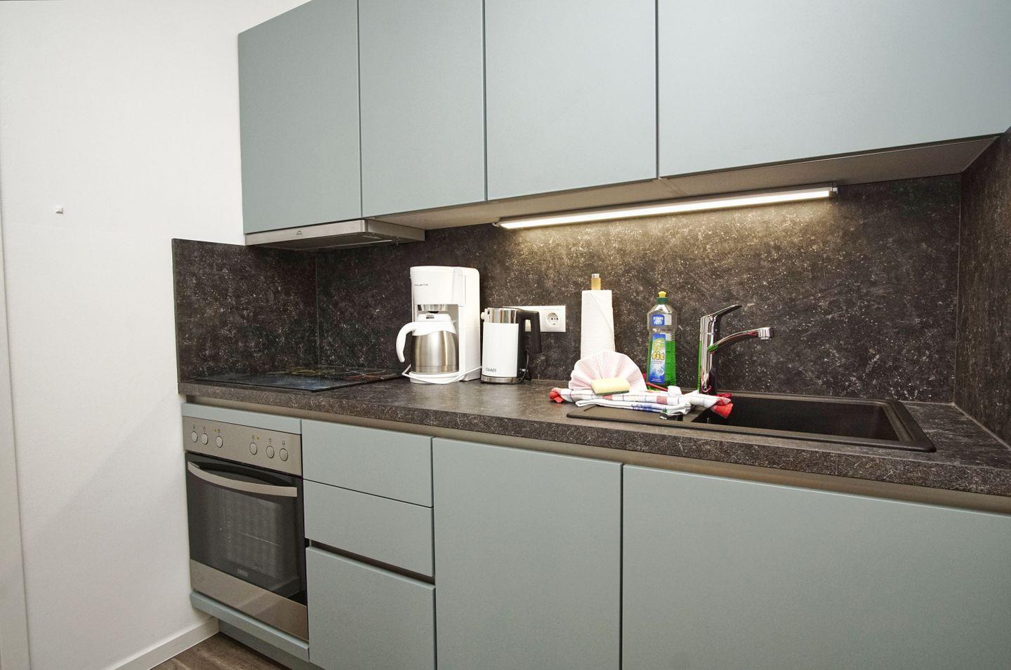 KÜCHE // offen Küche, 4-Platten Ceranfeld, Spülmaschine, Kühlschrank mit Gefrierfach, Backofen, Kaffeemaschine, reichlich Besteck, Dolce Gusto Kaffeemaschine, Geschirr und Küchenutensilien ++
