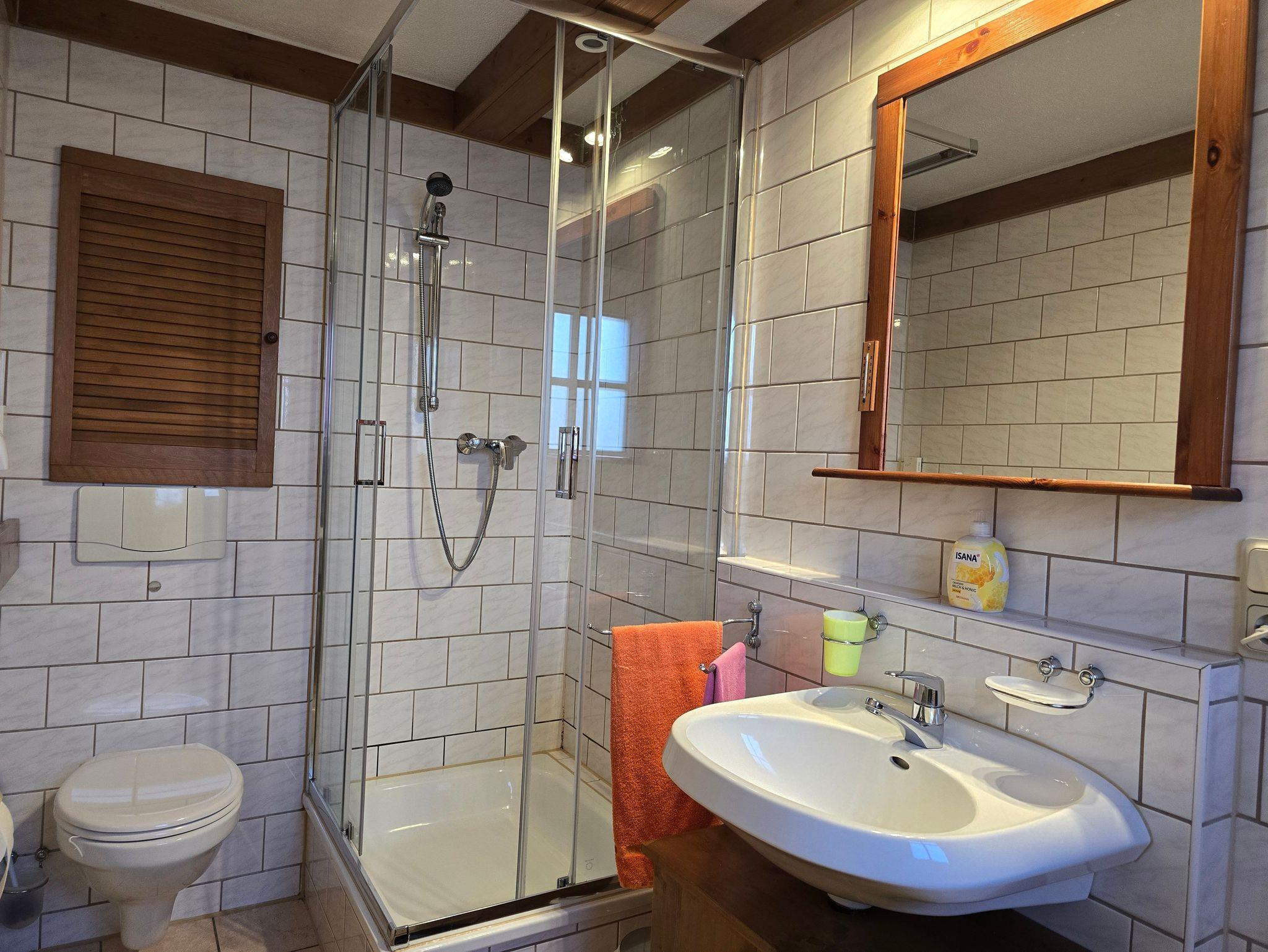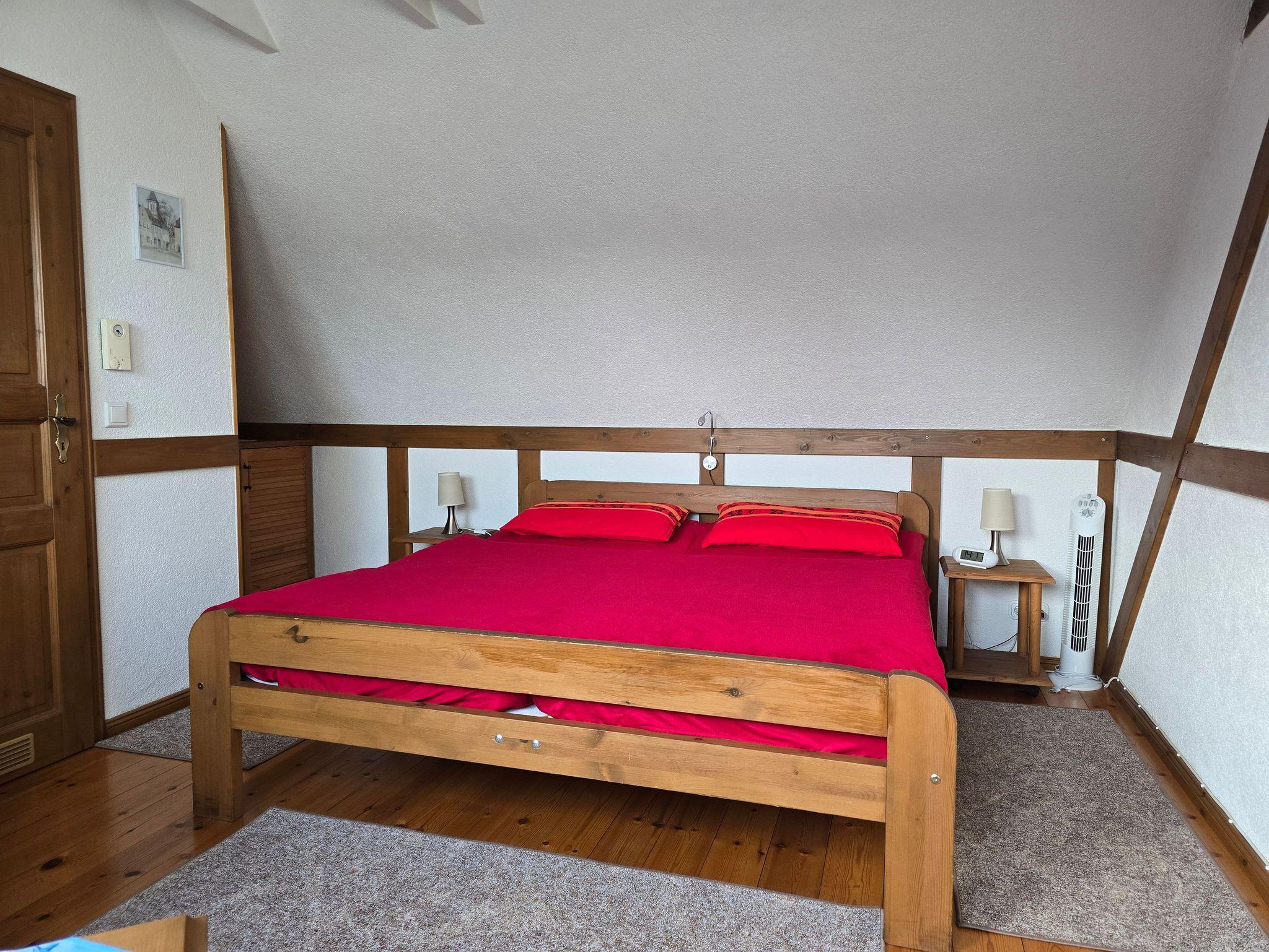 Auf dem abgeschlossenen Wohngrundstück gelegenes einzeln stehendes Ferienhaus mit einheitlicher Ausstattung (Wohnküche und Dusche mit Waschtisch und WC im Untergeschoss). Über Treppe zu erreichendes Obergeschoss mit zwei von einander getrennten Doppelzimmern (kombinierter Schlaf-Wohnraum) Ausstattung je Zimmer, Doppelbett, Wäscheschrank, Tisch, Stuhl, bequeme Sitzgelegenheit, TV . Das gesamte Obergeschoss ist mit Echtholzdielen versehen. Alle Zimmer sind mit einer elektrischen Natursteinheizung ausgerüstet. Im unteren Bereich ist der Fußboden gefliest. Das gesamte Ferienhaus ist im Innenbereich “Nichtraucher „. Im Eingangsbereich befindet sich eine überdachte Sitzecke zum Essen, Lesen, Rauchen usw.!