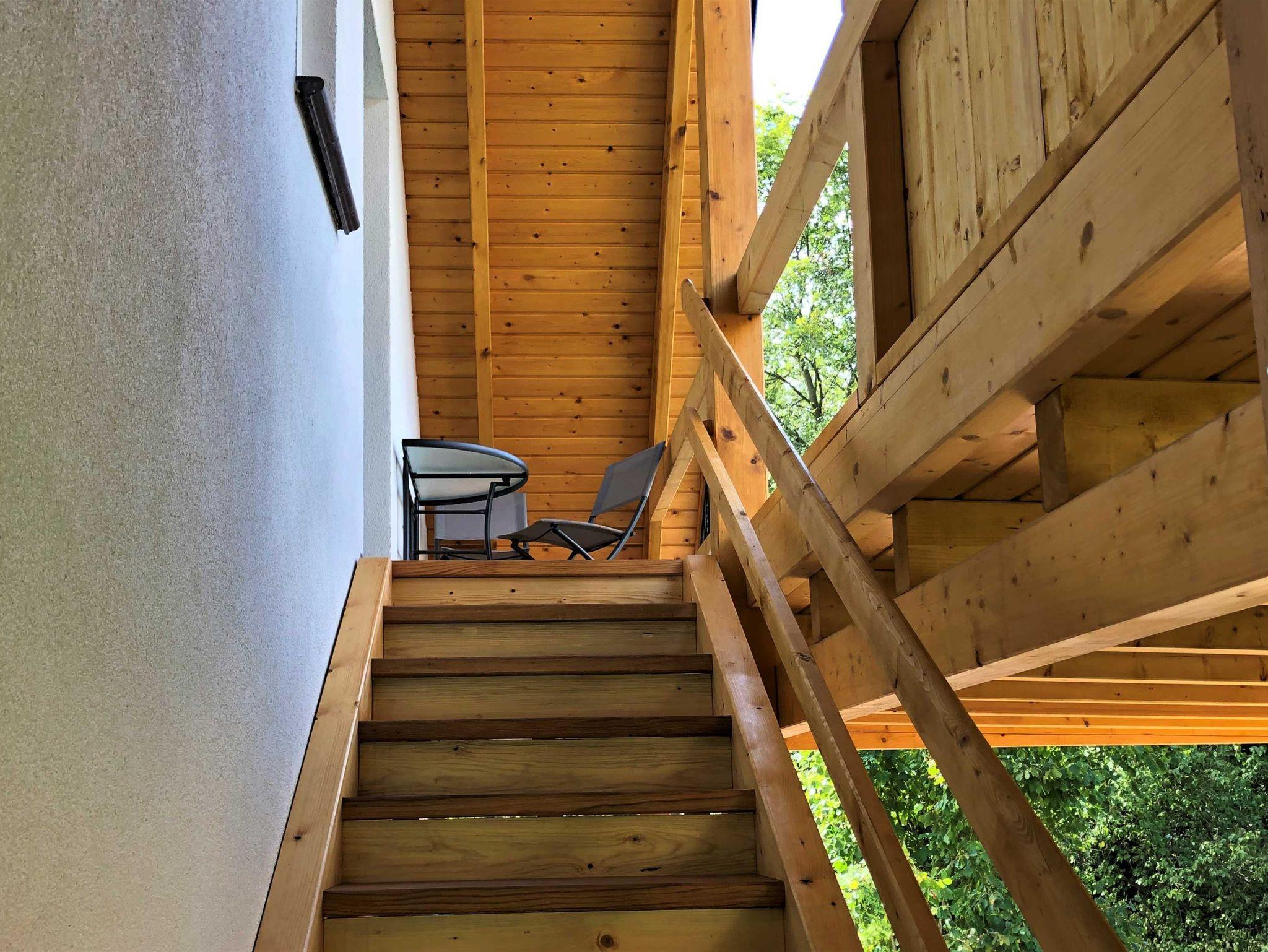 Die Ferienwohnung ist modern und zweckmäßig ausgestattet. Sie liegt in der 1. Etage des Hauses und wird über eine Außentreppe (witterungsgeschützt) erreicht.
