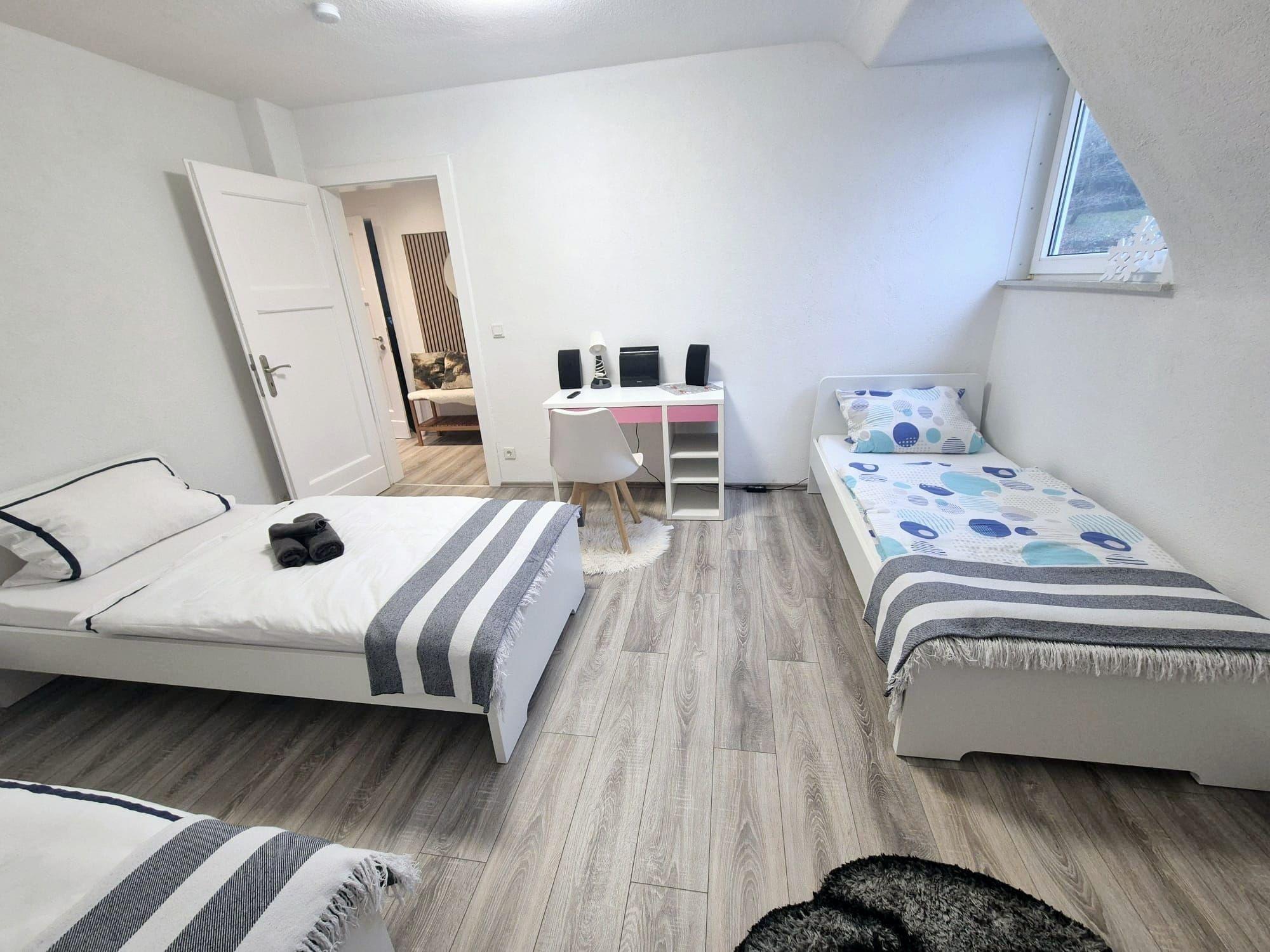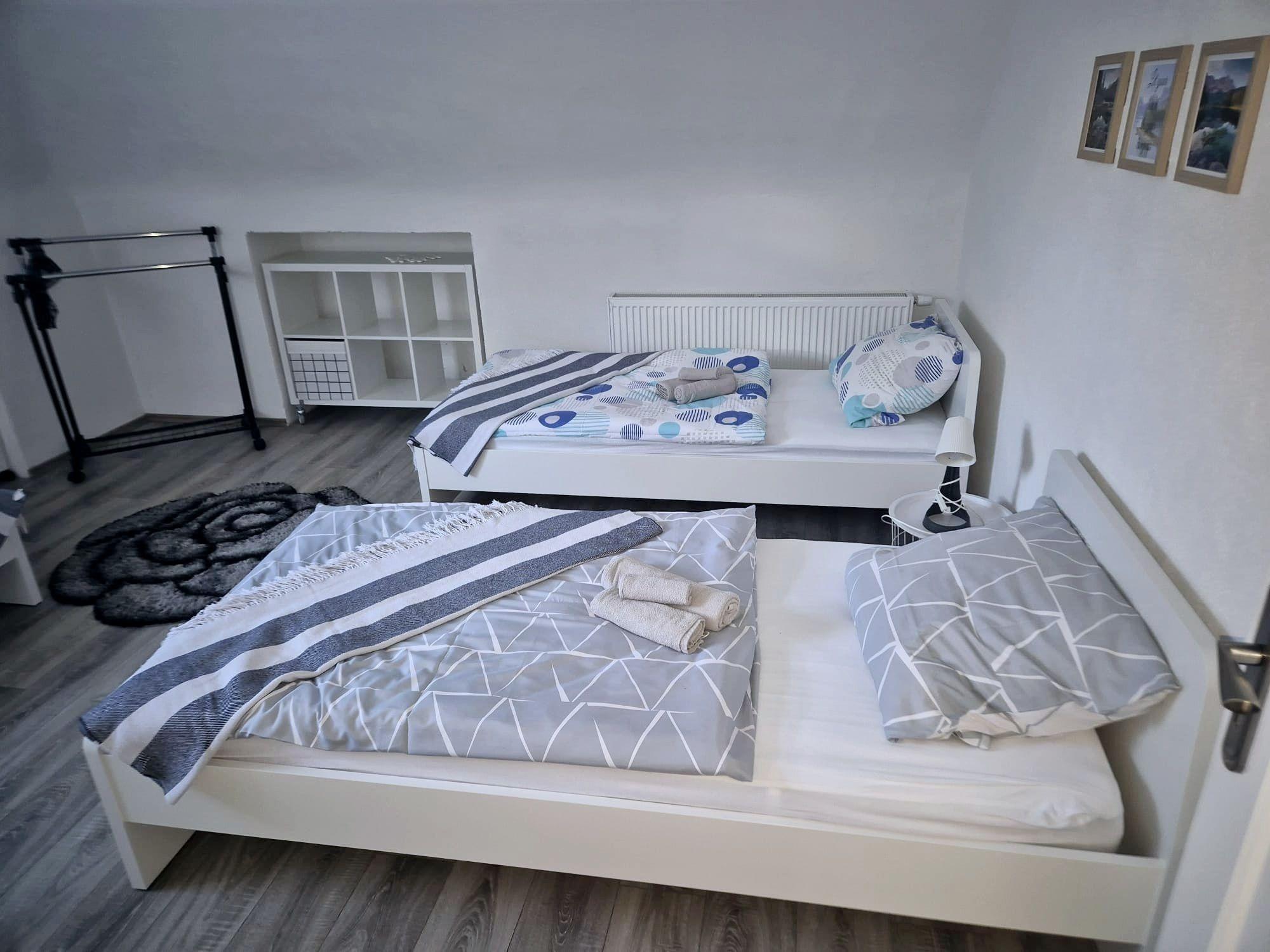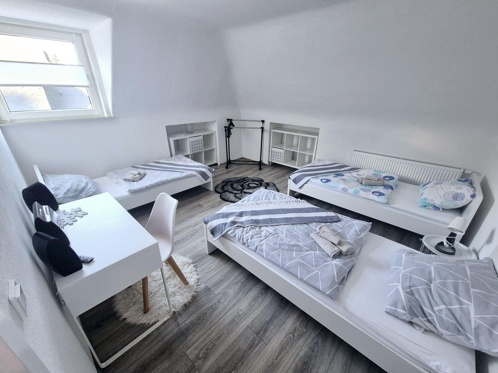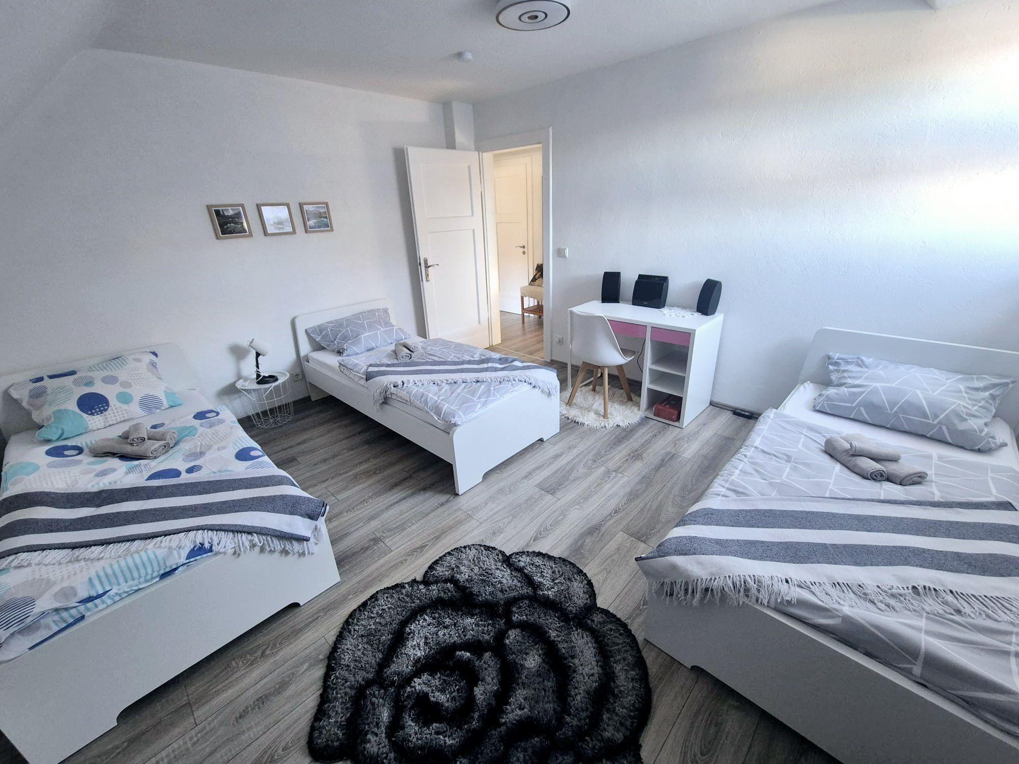 Die gesamte Wohnung ist Ende 2024 kernsaniert worden. Die Küche ist komplett neu installiert worden und beinhaltet alles, was man zum kochen und wohlfühlen benötigt. In der Küche befindet sich ein Esstisch, an dem 6 Personen gemütlich Platz finden. Das Wohnzimmer ist sehr groß. Die große Couch kann zum Bett umfunktioniert werden. Ein großer Fernseher kann für entspannte Stunden am Abend sorgen, oder Sie gehen den kurzen Weg in die Innenstadt oder nehmen den Bus, um die Annehmlichkeiten der Stadt zu genießen. Ein Schlafzimmer beherbergt Sie in einem Kingsizebett. In dem anderen Schlafzimmer finden Sie drei einzelne Betten. Das Badezimmer ist komplett neu gestaltet und beinhaltet eine Wellnessdusche mit Regendusche.