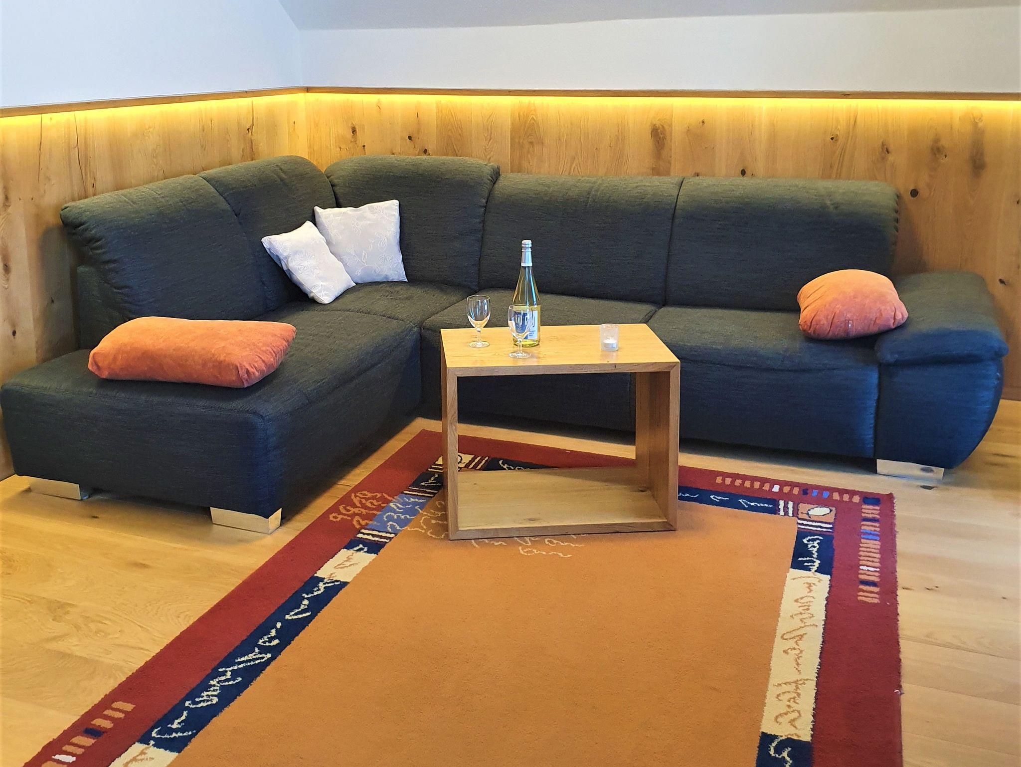 Die Ferienwohnung liegt im Dachgeschoß des Altbaus und ist komplett eingerichtet mit gemütlichem Wohnzimmer, TV, Couch, Balkon, Einbauküche mit Sitzecke, Radio und Telefon. Im Kinderzimmer befindet sich das Etagenbett, das Komfortbad ist mit Bodenheizung ausgestattet. Die Wohnung kann um ein Doppelzimmer mit eigenem Bad auf gleicher Etage erweitert werden.