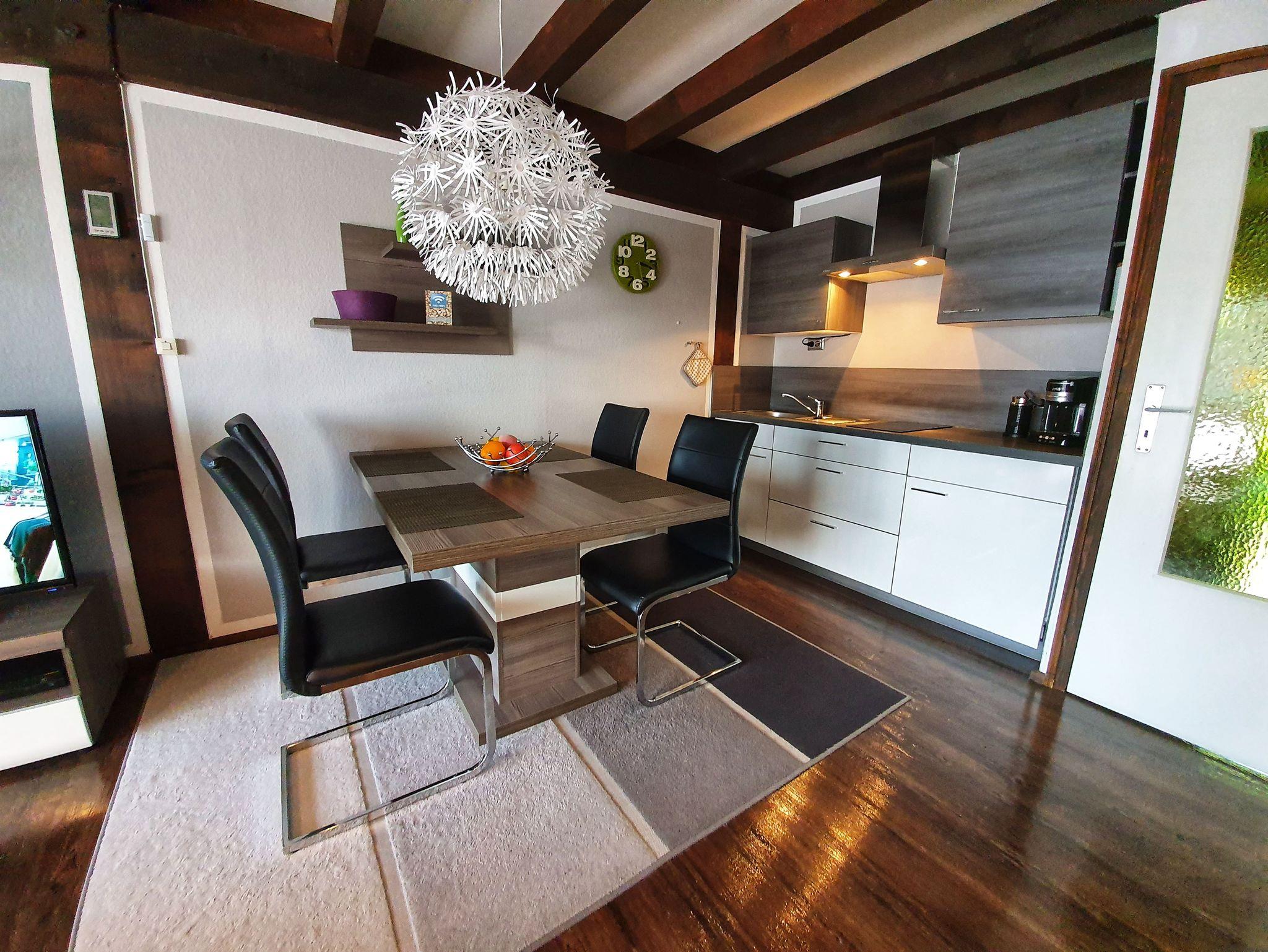 Das liebevoll eingerichtete Appartement, welches sich über zwei Etagen erstreckt (56 m²), kann mit 4 Personen bewohnt werden. Zur Not findet eine 5. Person noch Platz auf der ausziehbaren Couch.