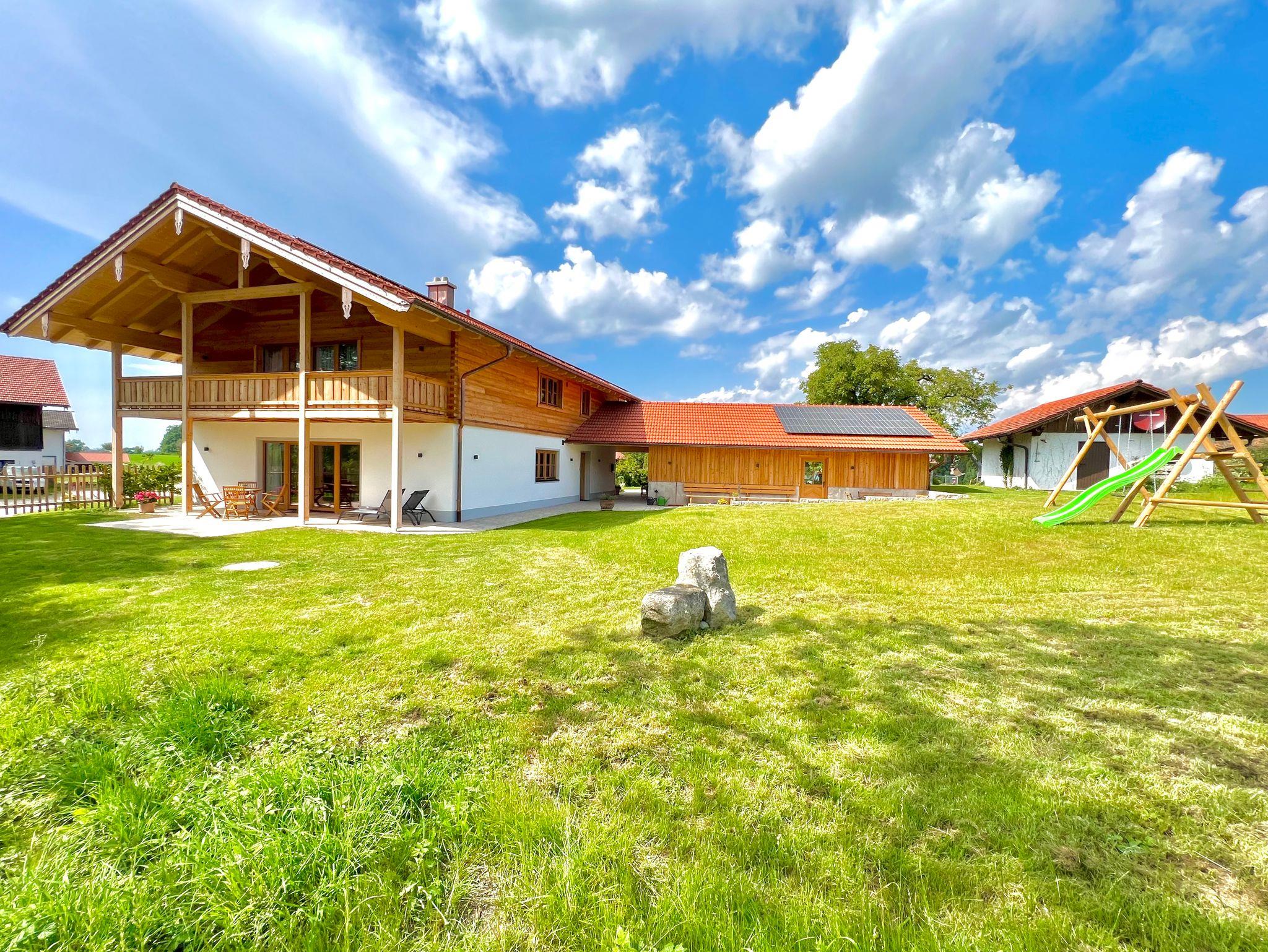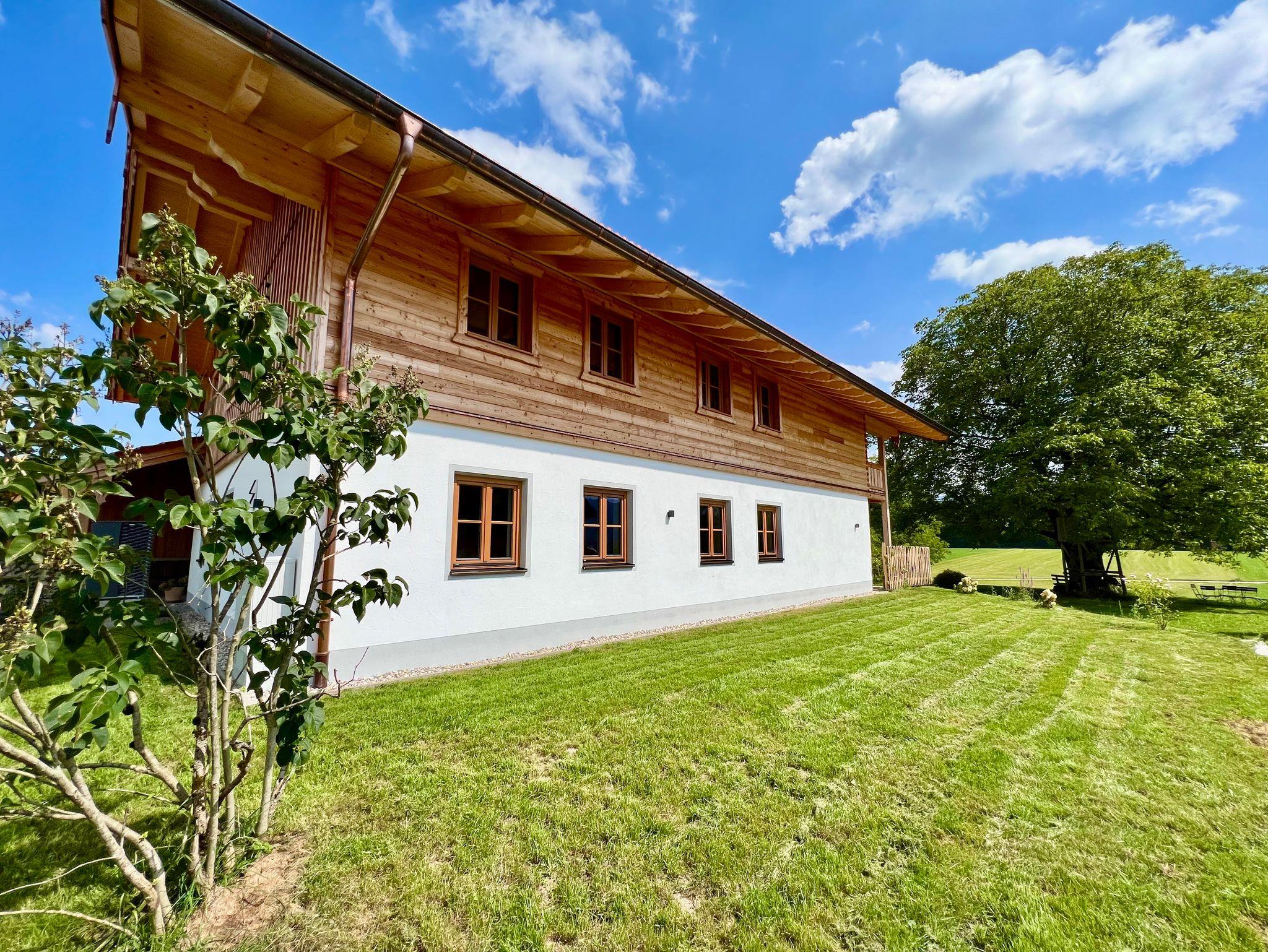 Unser nachhaltiges, 2023 fertiggestelltes Ferienhaus Woid 12 liegt im Luftkurort Siegsdorf auf ca. 780 m Höhe (Chiemgau, Voralpenland) und zeichnet sich durch zwei abgetrennte, jeweils 100 qm Wohnungen aus. Erleben Sie den Naturgenuss direkt vor der Haustüre, wo sich sprichwörtlich „Fuchs und Hase gute Nacht sagen“. Das freistehende Haus besticht durch den unverbaubaren Blick auf Wald, Wiesen und die Berge.