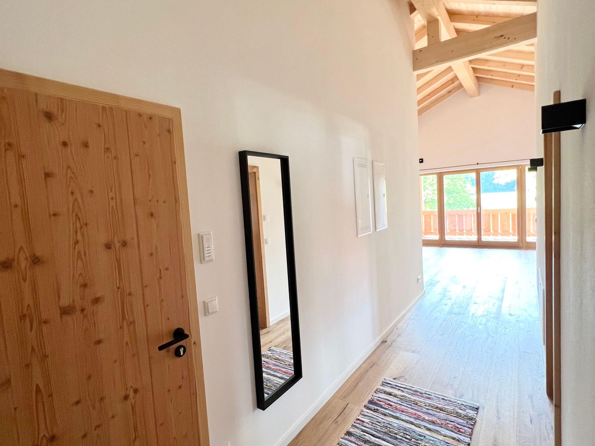 Die Ferienwohnung Mia mit 100 m² liegt im gemütlichen Dachgeschoß. Sieverfügt über zwei Schlafzimmer mit Zirbenbetten (1 x Doppelbett, 2 x Einzelbetten, Kinderreisebett auf Anfrage), eine vollausgestattete Küche (Kaffeemaschine, Toaster, Wasserkocher, Essig, Öl, gängige Gewürze, Backpapier, Frischhaltefolie, Spülmaschinentabs, Spülmittel, usw.), ein Wohn- und Esszimmer, ein Bad mit Infrarotkabine und ein Waschraum (Waschmaschine, Trockner, Wäscheständer). Im Keller befindet sich noch ein eingerichtetes Regal mit einer Auswahl an Spielen, Kinderbüchern und Spielsachen. Bei der Auswahl der Materialien achteten wir darauf heimische Hölzer zu verwenden (Eiche, Fichte, Lärche, Zirbe). Außerdem bieten wir einen Carport mit 2 Stellplätzen mit Stromanschluss an.