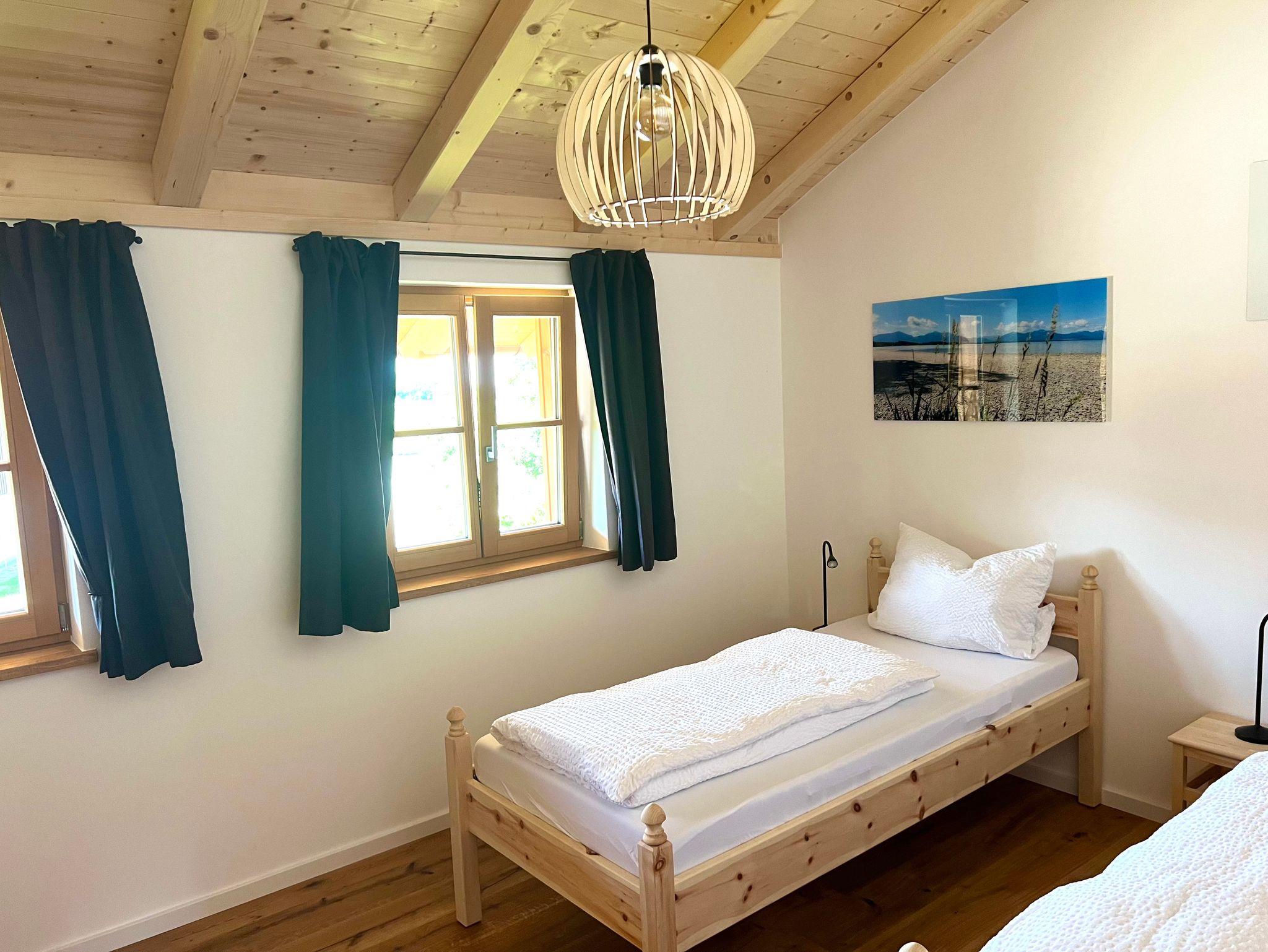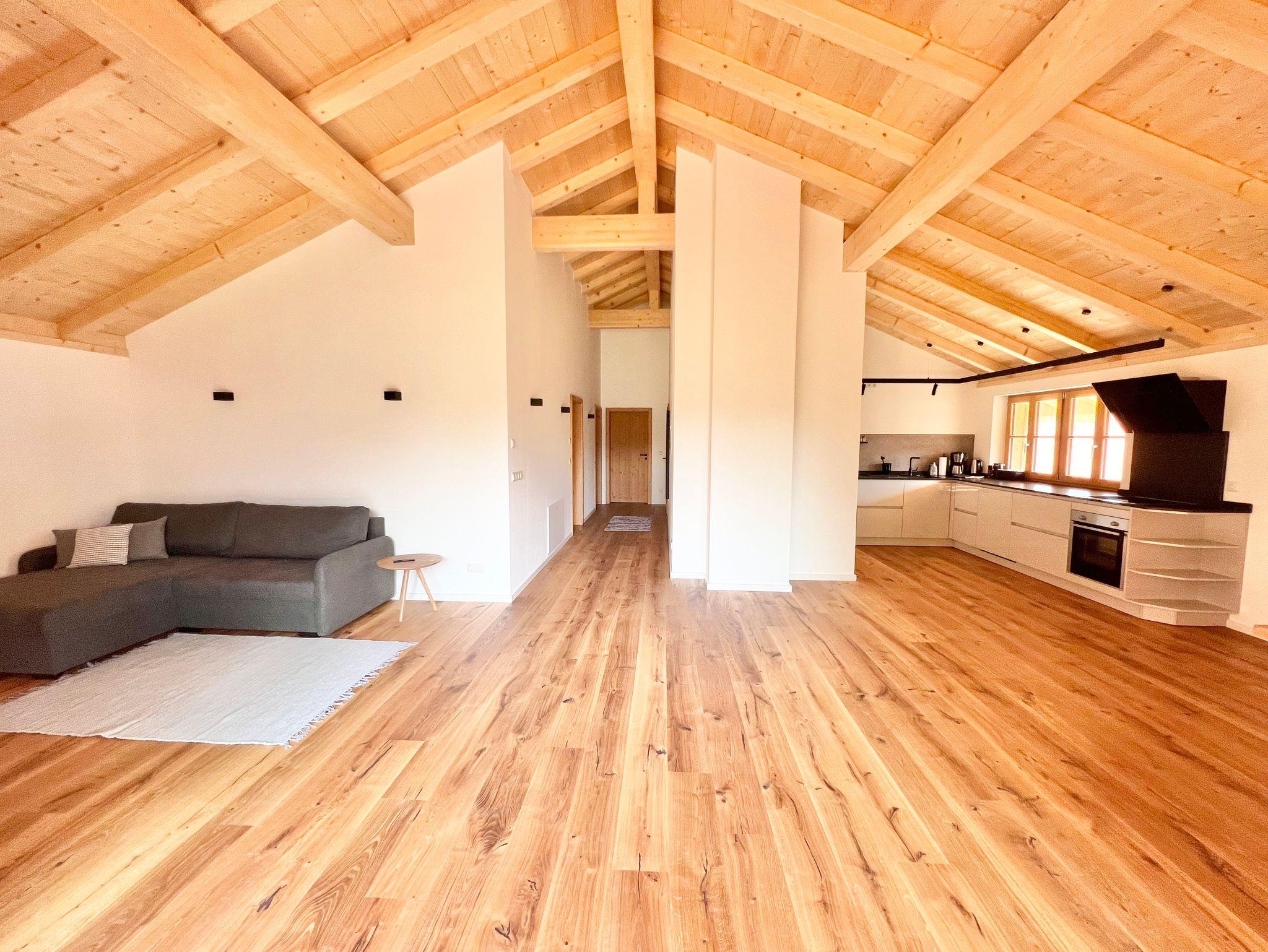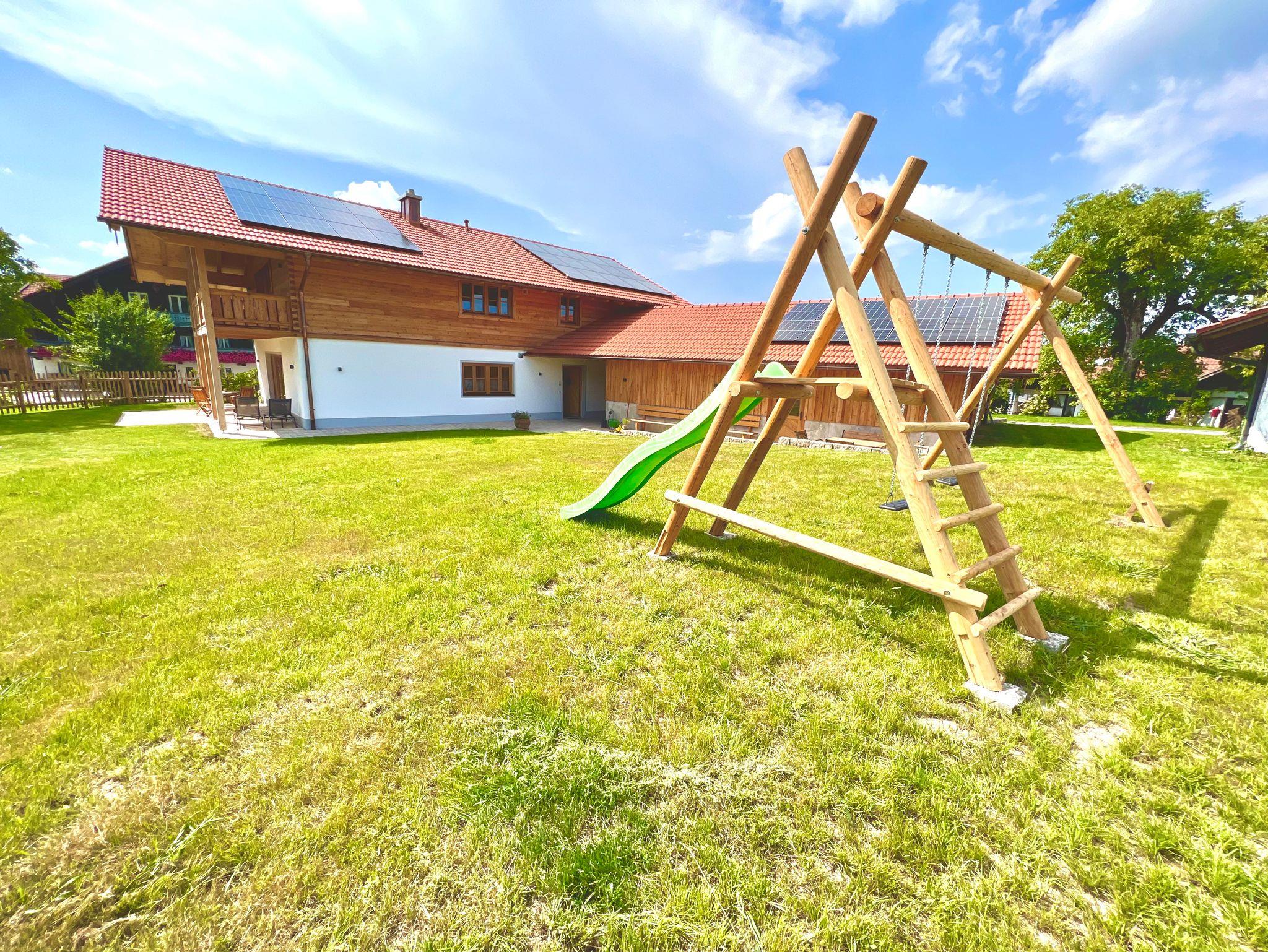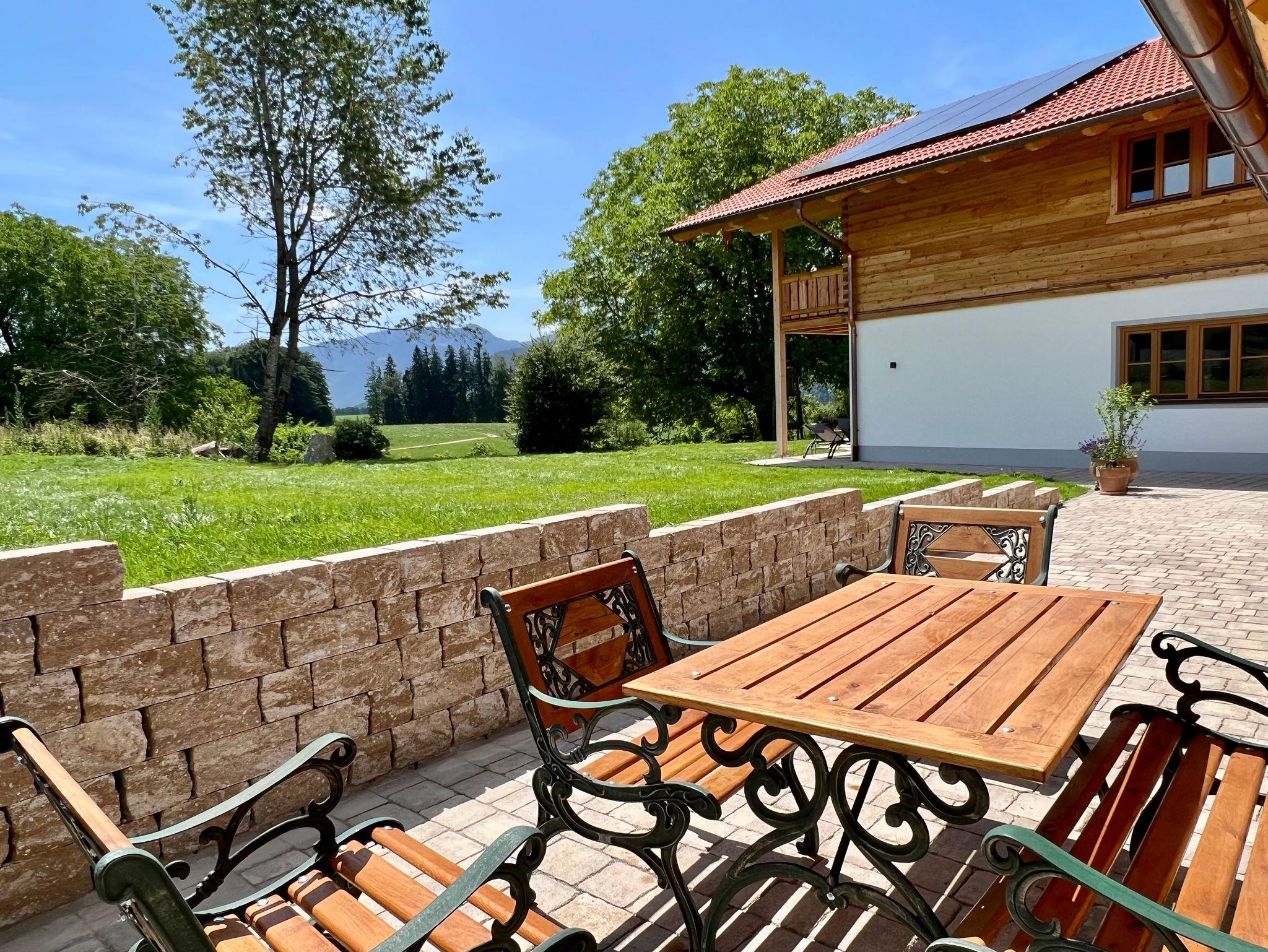 Unser nachhaltiges, 2023 fertiggestelltes Ferienhaus Woid 12 liegt im Luftkurort Siegsdorf auf ca. 780 m Höhe (Chiemgau, Voralpenland) und zeichnet sich durch zwei abgetrennte, jeweils 100 qm Wohnungen aus. Erleben Sie den Naturgenuss direkt vor der Haustüre, wo sich sprichwörtlich „Fuchs und Hase gute Nacht sagen“. Das freistehende Haus besticht durch den unverbaubaren Blick auf Wald, Wiesen und die Berge.