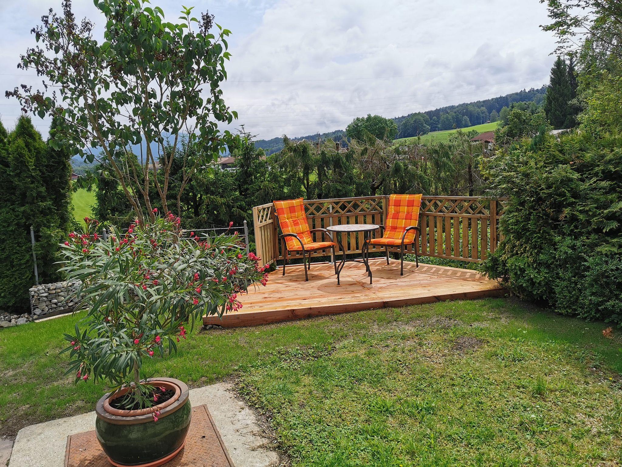 Die Ferienwohnung befindet sich in Siegsdorf - Buchenwaldsiedlung, ca. 1,5 km von der Ortsmitte entfernt. Es handelt sich um eine Erdgeschoßwohnung mit Terrasse und kleinem, abgeschlossenem Garten.Mit 100qm bietet sie ausreichend Platz für vier Personen. Die Wohnung hat ein Schlafzimmer, ein Wohnzimmer mit Kaminecke, Esszimmer, Küche, Bad und ein getrenntes WC.Die Terrasse ist überdacht und bietet einen weiteren Essplatz. Darin schließt sich einer kleiner abgeschlossener Garten mit einer weiteren Sitzecke an.
