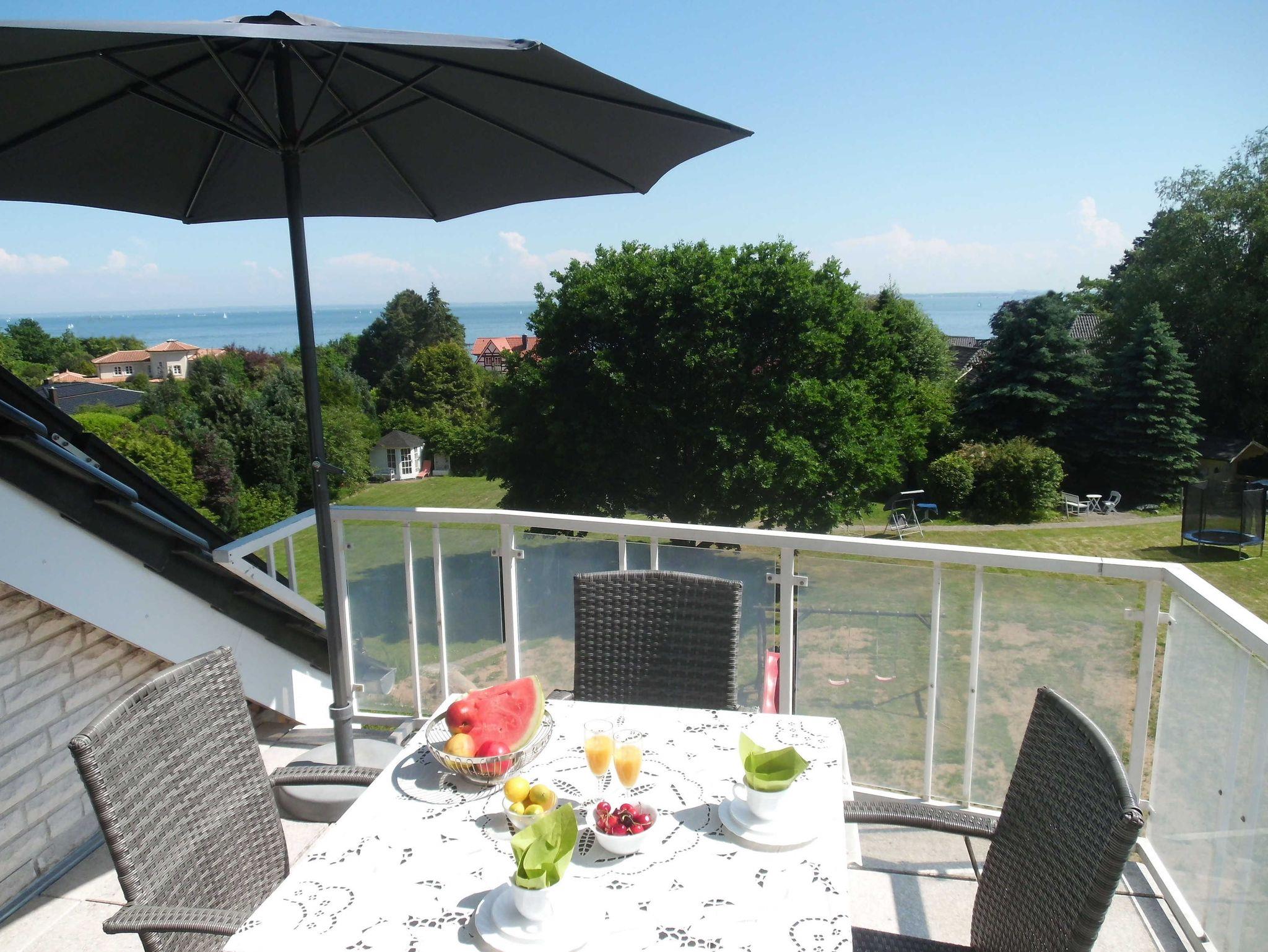 Hier genießen die Gäste den wunderschönen Blick auf die Lübecker Bucht von unserer großen Sonnenterrasse oder dem weitläufigen parkähnlichen Grundstück!