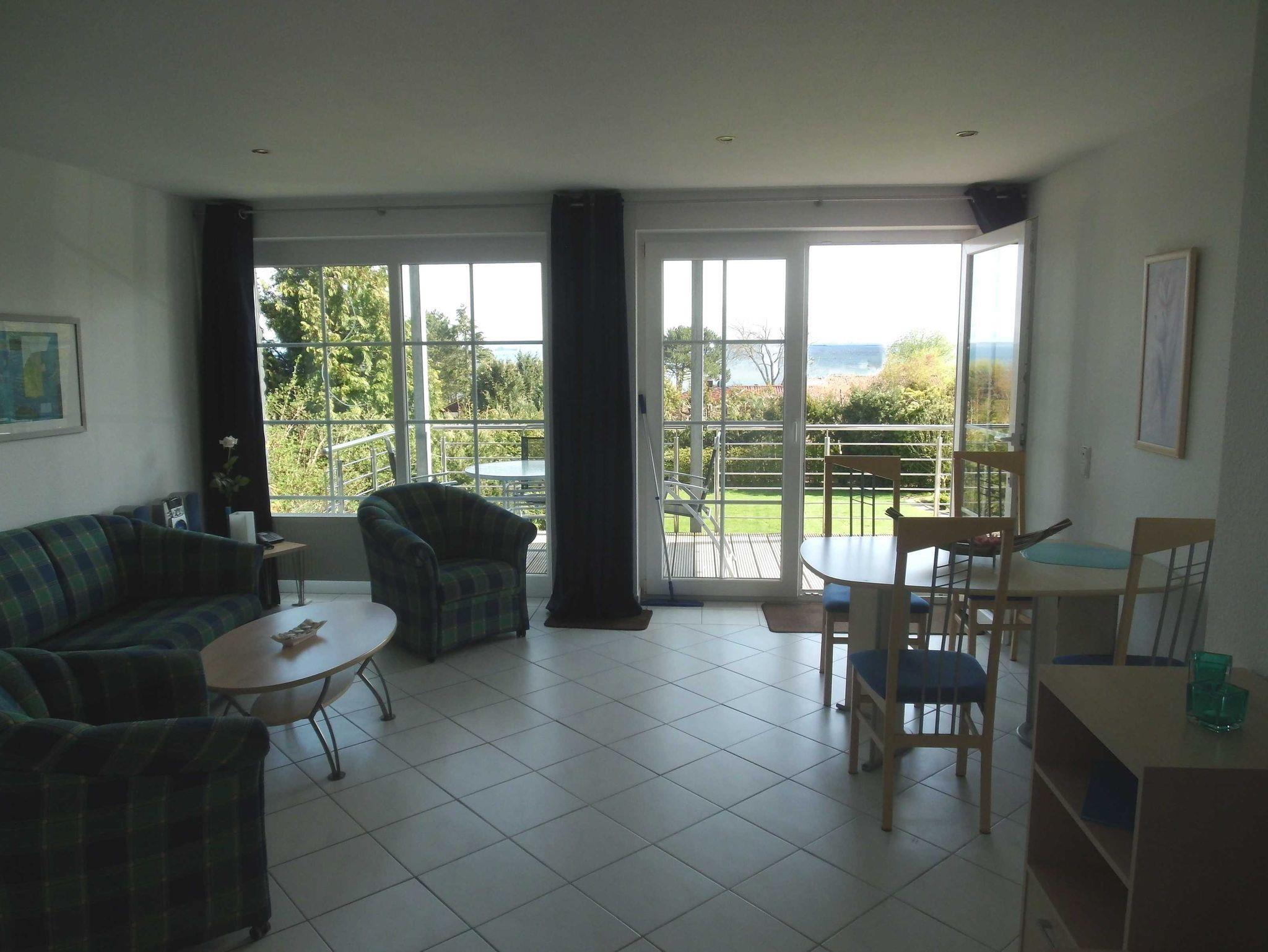 Hier genießen die Gäste den wunderschönen Blick auf die Lübecker Bucht von unserer großen Sonnenterrasse oder dem weitläufigen parkähnlichen Grundstück!