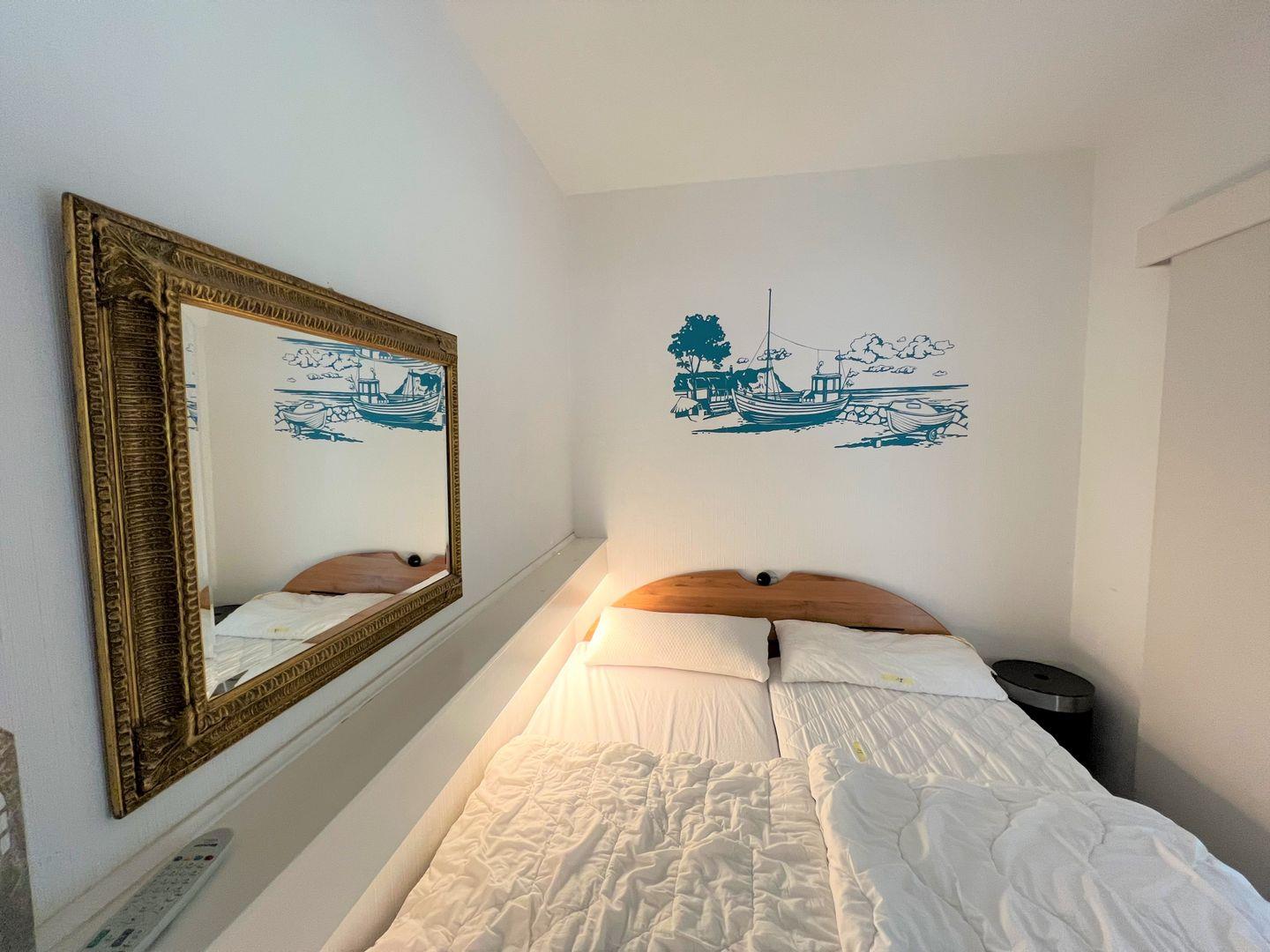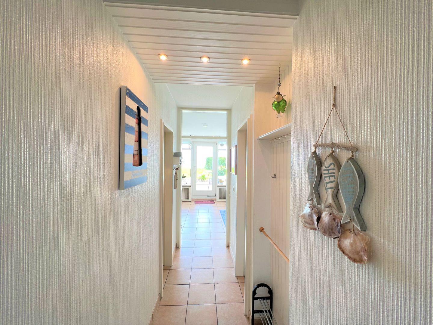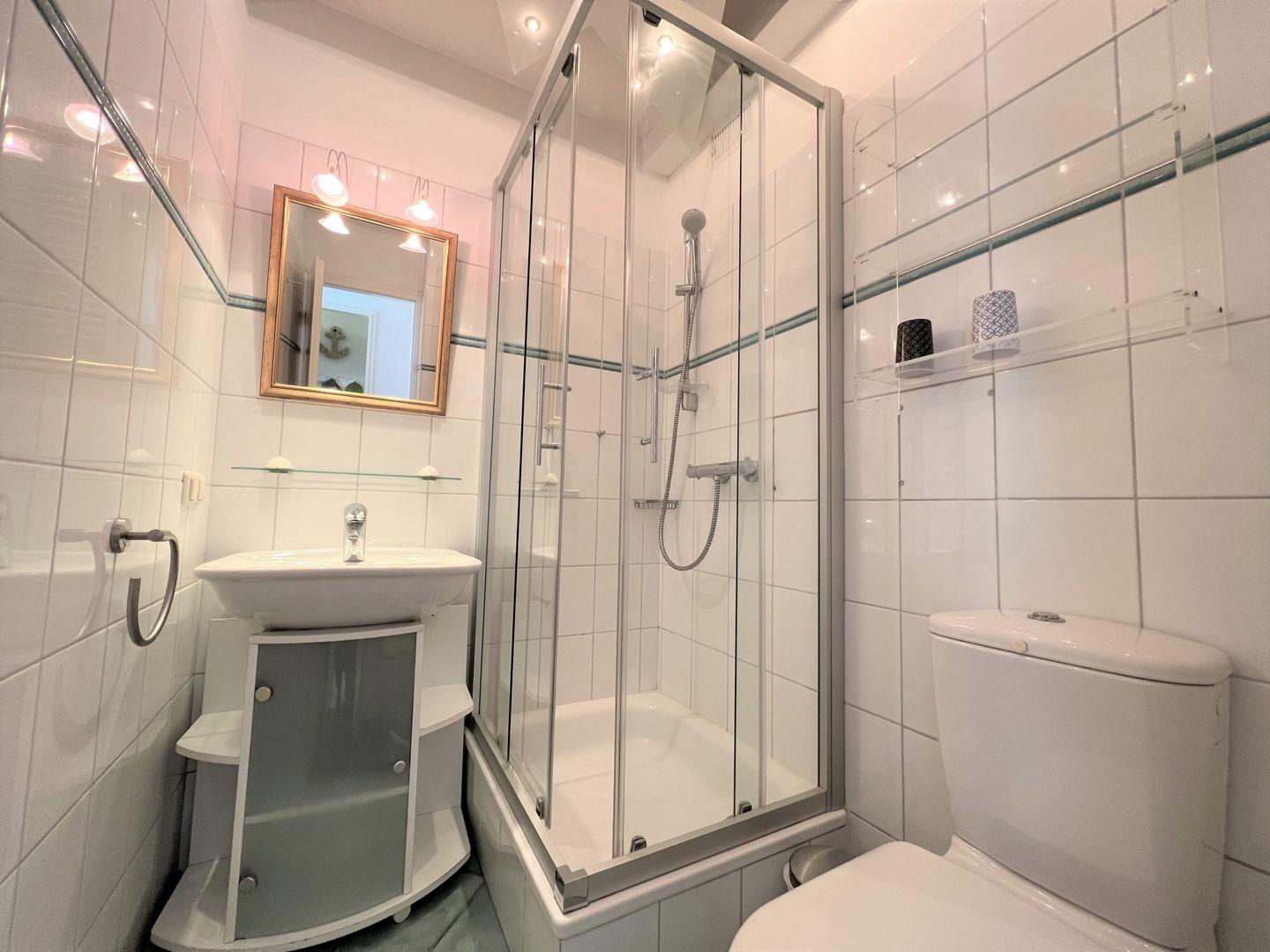 Das Apartment Nr. 015 befindet sich in der 1. Reihe der Terrassenhäuser in unmittelbarer Strandnähe. Genießen Sie von der Terrasse aus den Meerblick. Die Küche mit Spülmaschine und Backofen hat eine Durchreiche zum maritimen Wohn-und Esszimmer. Ein Schlafzimmer mit Doppelbett, ein Kinderzimmer mit Etagenbett und ein Badezimmer mit Dusche runden diese Ferienunterkunft ab. Die Schlafräume haben ein Oberlicht zum Öffnen. WLAN ist inklusive.