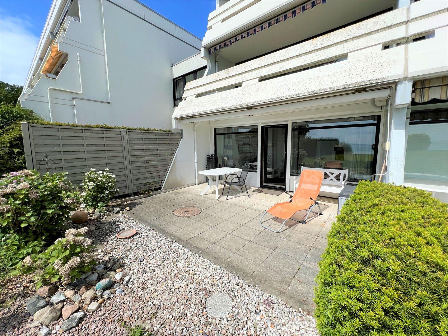 Herzlich Willkommen im Apartment Nr. 015. Die Wohnung befindet sich in der 1. Reihe der Terrassenhäuser einer gepflegten Ferienanlange direkt am feinsandigen Ostseestrand von Sierksdorf. Die teilweise überdachte und möblierte Terrasse in Süd-Ost-Lage bietet Ihnen einen geschützten Platz im Freien mit Sonnenschutz, von dem aus Sie den Meerblick und den Sonnenaufgang genießen können. Die Wohnung liegt im Erdgeschoß und ist über eine Treppe erreichbar. Die Küche hat eine Durchreiche zum maritimen Wohn-und Esszimmer und ist mit Herd, Backofen und Spülmaschine ausgestattet. Die Schlafräume haben ein Oberlicht zum Öffnen. Im ersten Schlafraum steht ein Doppelbett (2x 90 cm x 190 cm), im zweiten ein Etagenbett (jeweils 90 cm x 190 cm). Das Bad ist innenliegend und verfügt über eine Dusche. Die Wohnung ist durchgehend gefliest und modern ausgestattet. Vom Wohnraum auf die Terrasse und dann über die Wiese direkt zum Strand - schneller kann die Entspannung kaum starten! PKW-Stellplatz inklusive.