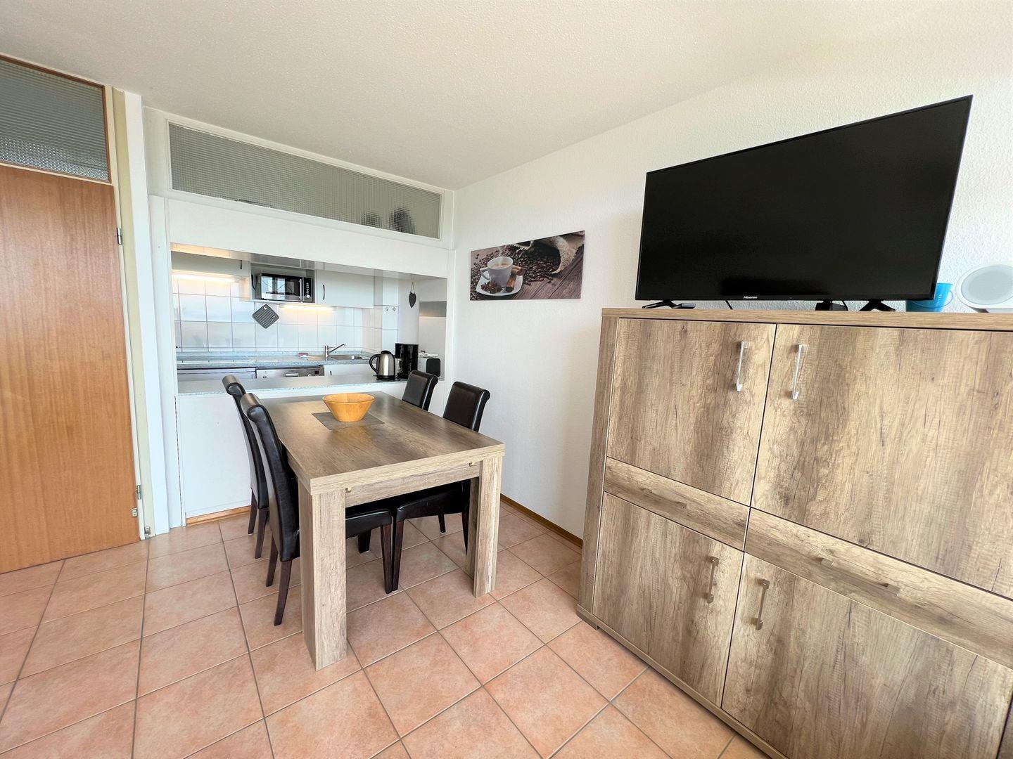 Willkommen in der 3-Raum-Ferienwohnung Nr. 205! Die Wohnung befindet sich in der 2. Etage mit Balkon in Süd-Ost-Lage und Blick auf die Ostsee. Vom kombinierten Wohn- und Essbereich haben Sie Zugang zum Balkon. Die Küche, mit Spülmaschine und Backofen ausgestattet, ist mit einer Durchreiche zum Essbereich offen. Im ersten Schlafraum stehen 2 Einzelbetten, im zweiten steht ein Etagenbett. Das innenliegende Duschbad wurde modernisiert. Zum Strand sind es nur wenige Gehminuten. WLAN ist inklusive.