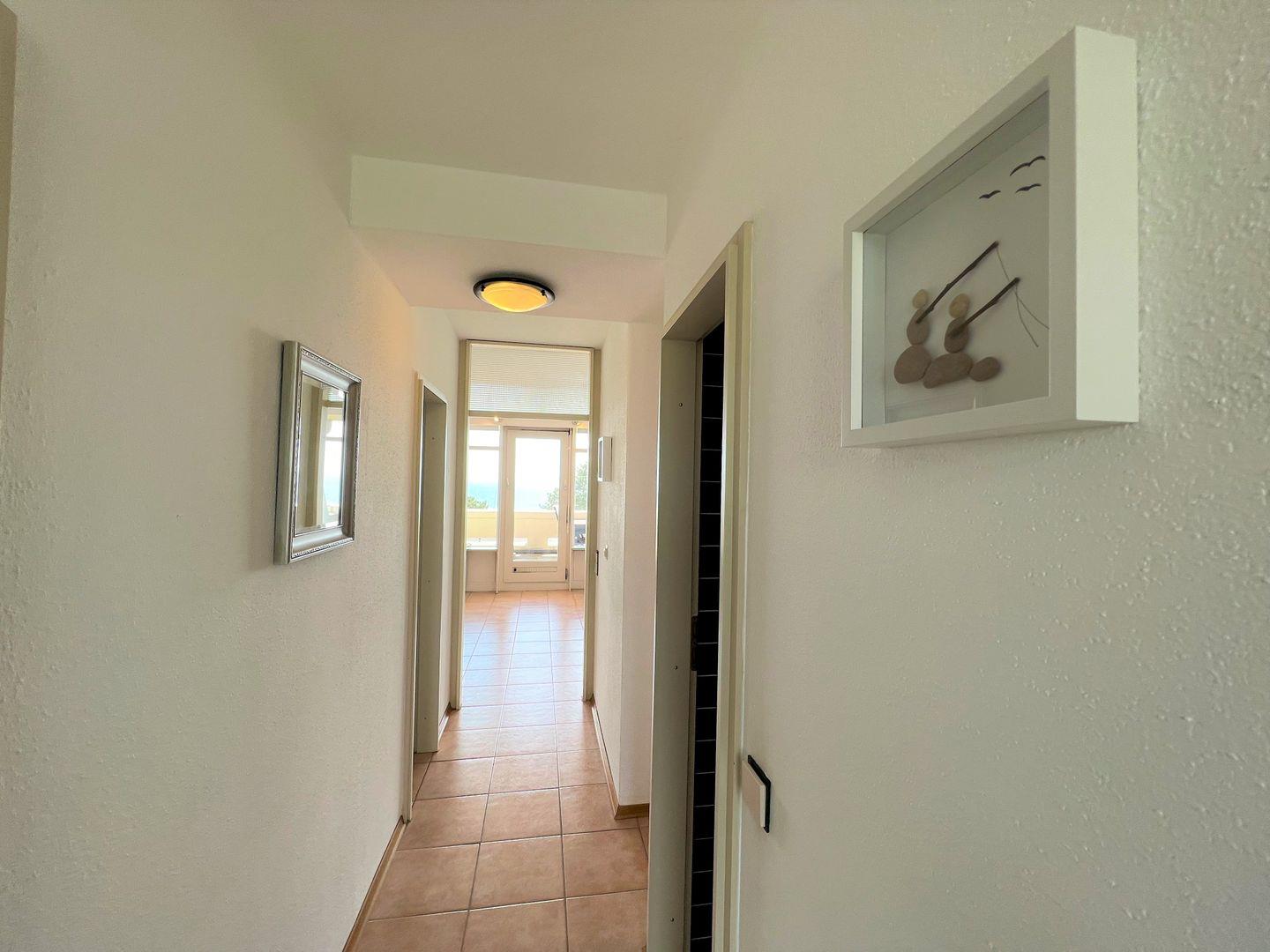 Herzlich Willkommen in der 3-Raum-Ferienwohnung Nr. 205, hier kann die ganze Familie aus der 2. Etage den Meerblick genießen. Der große Balkon in Süd-Ost-Lage hat über die 1- Reihe der Terrassenhäuser Blick auf die Ostsee und lädt zum Entspannen und Erholen ein. Die ca. 50 qm große Wohnung ist für 4 Personen geeignet. Im ersten Schlafraum stehen 2 Einzelbetten, die nicht zusammen zu schieben sind. Im zweiten Schlafraum steht ein Etagenbett. In den Schlafräumen ist kein Platz für ein Babybett. Vom kombinierten Wohn- und Essbereich haben Sie Zugang zum Balkon. Die kleine Küche, mit Spülmaschine und Backofen ausgestattet, ist mit einer Durchreiche zum Essbereich hin offen. Das innenliegende Duschbad wurde modernisiert. Zum Badestrand sind es nur wenige Minuten zu Fuß. PKW-Stellplatz inklusive.