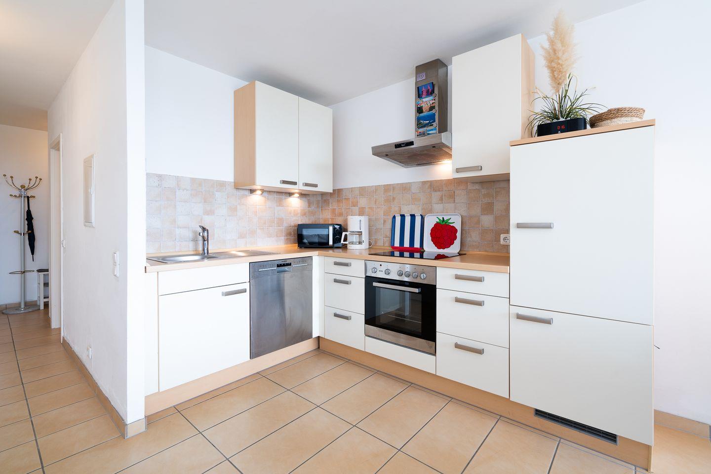 Die 3-Zimmerwohnung mit zwei Schlafzimmern ist ausgestattet für eine 5-köpfige Familie. Vom Balkon in der 6. Etage können Sie in Süd-West-Lage einen herrlichen Blick über die Lübecker Bucht genießen. Vom modernen kombinierten Wohn- und Essbereich mit offener Küche haben Sie Zugang zum Balkon. Die Küche ist mit Spülmaschine, Backofen und Herd voll ausgestattet. Im ersten Schlafzimmer mit Fenster steht ein Doppelbett (2x 90 cm x 200 cm), im zweiten ein Schlafsofa (140 cm x 190 cm). Das Wohnzimmer verfügt über ein weiteres Schlafsofa. Das helle, modernisierte Wannenbad ist innenliegend. Vom PKW-Stellplatz führt ein Seiteneingang zum Fahrstuhl zum ebenerdigen Be-und Entladen. Ohne eine Straße überqueren zu müssen, sind es zum Strand nur wenige Fußschritte.