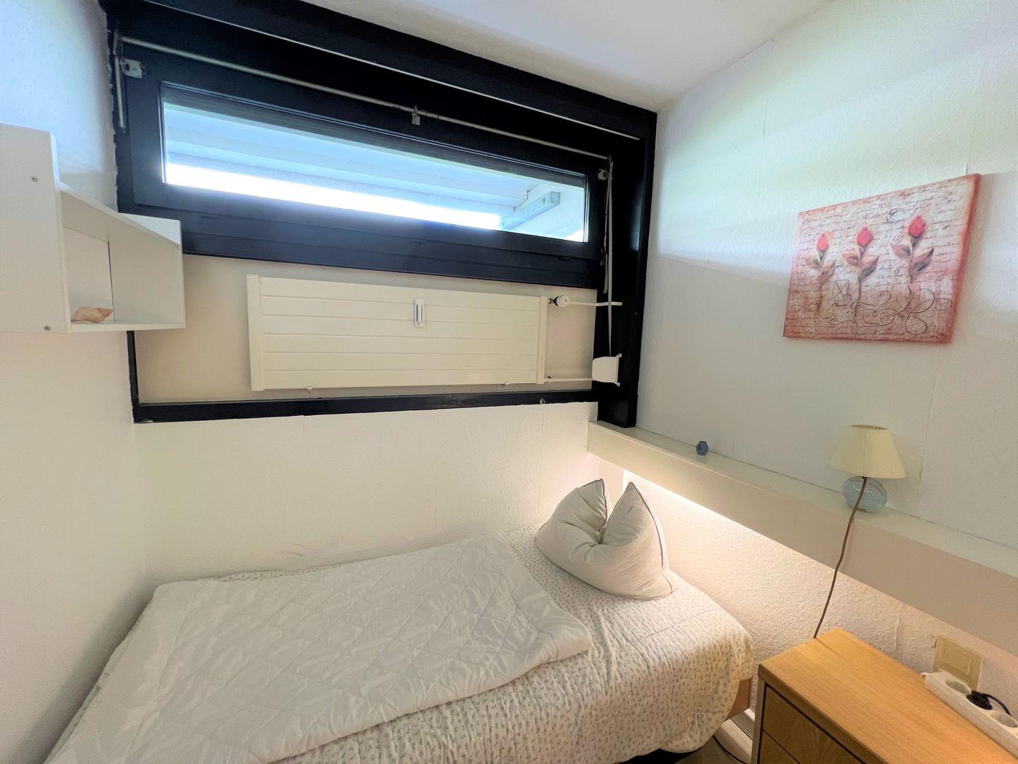 Die Wohnung befindet sich in der 1. Etage mit großem Balkon in Süd-Ost-Lage und schönem Ostseeblick. Kein Durchgangsverkehr und zum Strand nur wenige Gehminuten - der Urlaub kann losgehen! Vom kombinierten Wohn- und Essbereich haben Sie Zugang zum Balkon. Die kleine Küchenzeile, mit Backofen und Herd ausgestattet, ist mit einer Durchreiche zum Wohn- und Essbereich hin offen. Im ersten Schlafraum befinden sich 2 Einzelbetten (jeweils 90 cm x 190 cm), die man nicht zusammenschieben kann. Im zweiten Schlafraum steht ein Schlafsessel (90 cm x 190 cm). Das Sofa im Wohnzimmer kann als Alternative ebenfalls zum Schlafsofa umfunktioniert werden. Es gibt ein innenliegendes Duschbad. Von Ihrem PKW-Stellplatz aus gelangen Sie ebenerdig in die Wohnung. Zum Strand sind es einige wenige Stufen. PKW-Stellplatz inklusive.