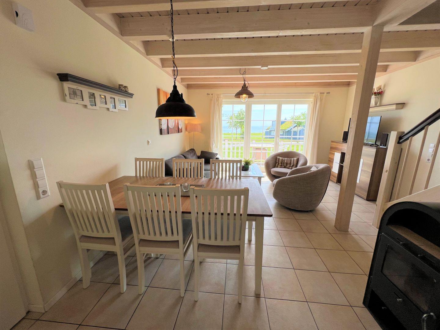 Die große Doppelhaushälfte "Ostsehblick" Nr. 92 bietet viel Platz und Wohlfühl-Komfort über 3 Etagen und Blick auf die Ostsee. Der Wohn-Essbereich mit Kamin und offener Küche mit Waschmaschine liegen im Erdgeschoss, sowie die Sauna mit Dusche und WC. In der ersten Etage sind 2 Schlafräume mit Doppelbetten und das Bad mit Whirlwanne. Zur offenen Schlafgalerie mit zwei Einzelbetten und führt von der 1.Etage aus eine steile Raumspartreppe. WLAN ist inklusive.
