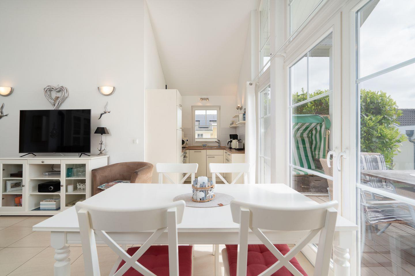 Die gemütliche Bungalowhälfte „Seemuschel“ Nr. 52 liegt in der Strandpark-Anlage und ist für 4 Personen geeignet. Vom geräumigen Wohnraum mit Pelletofen und offener Küche haben Sie Zugang zur Terrasse. Die Küche ist mit Spülmaschine, Backofen und Herd ausgestattet. Im ersten Schlafraum steht ein Doppelbett, im zweiten Schlafraum stehen zwei Einzelbetten. Das Bad verfügt über Badewanne, Sauna und Waschmaschine. WLAN ist inklusive.