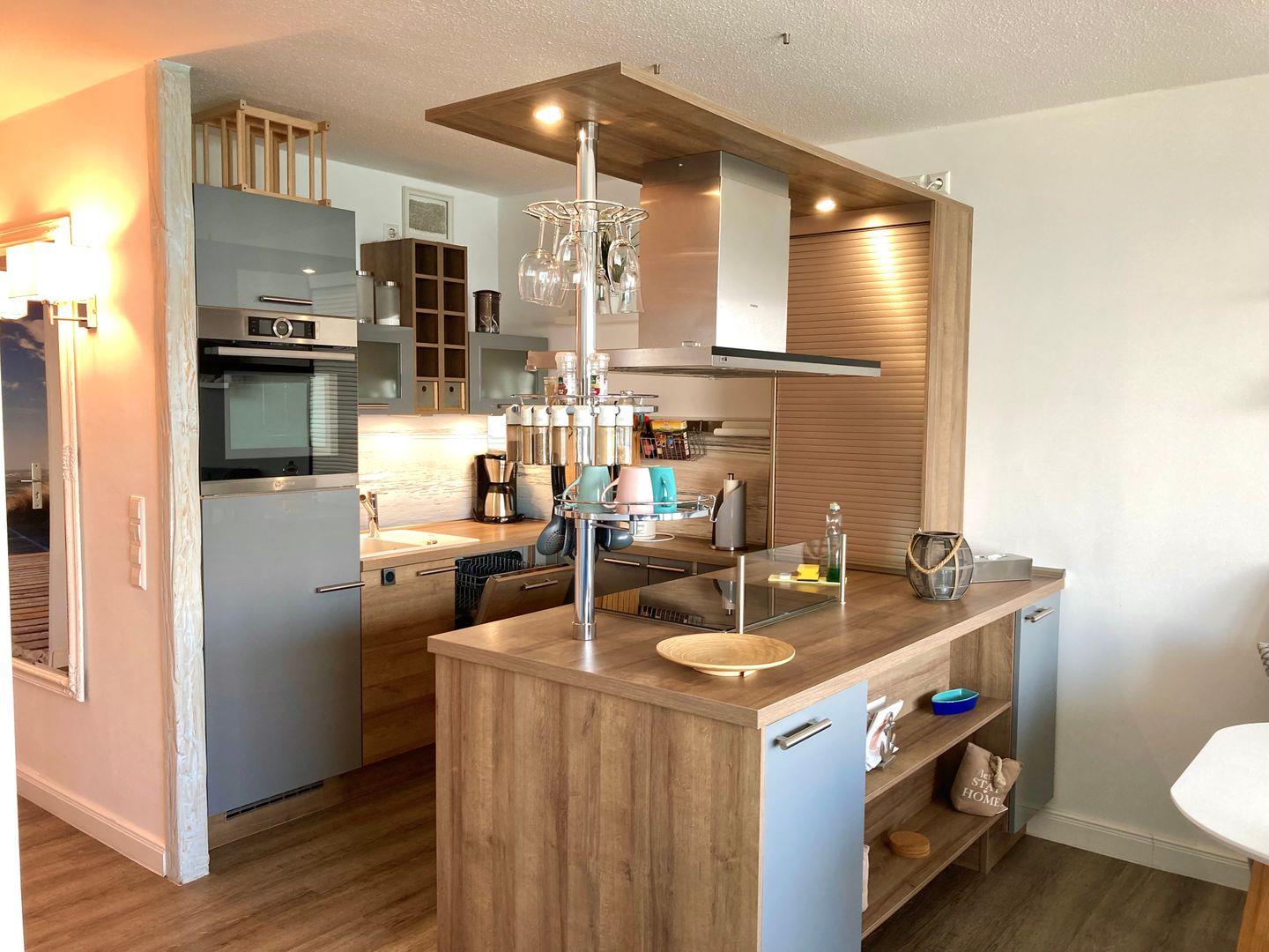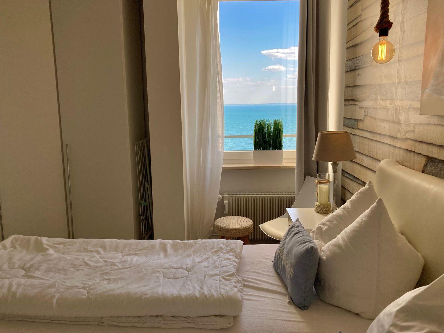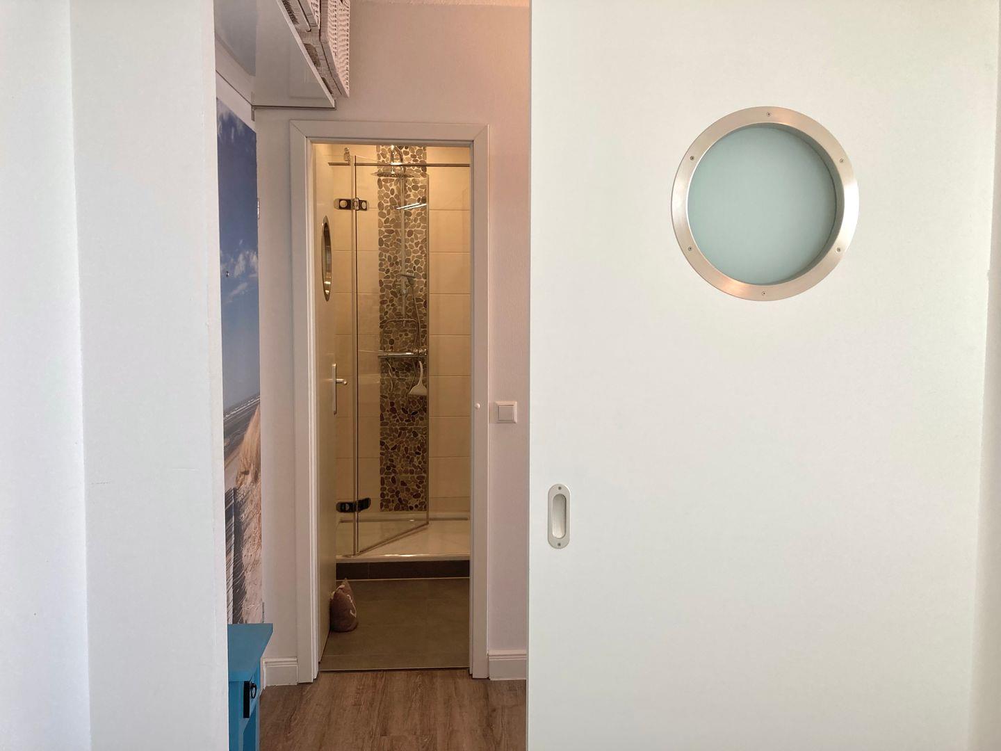Die mit viel Liebe zum Detail und hochwertig eingerichtete 2-Zimmer-Wohnung in der 4. Etage ist für 2 Personen ausgestattet. Vom Balkon in Süd-Ost-Lage haben Sie einen herrlichen Blick auf die Ostsee. Die mit Spülmaschine, Backofen und Herd voll ausgestattete Küche ist in den gemütlichen Wohn- und Essbereich integriert. Das komfortable Schlafzimmer verfügt über ein Doppelbett (2x 90 cm x 200 cm) und Ostseeblick - Aufwachen und das Meer sehen! Das moderne Duschbad ist innenliegend. Ohne eine Straße überqueren zu müssen, sind es zum Strand nur wenige Minuten zu Fuß. Der PKW-Stellplatz im Parkdeck ist nur über eine Treppe erreichbar, ein Seiteneingang führt aber zum Fahrstuhl zum ebenerdigen Be-und Entladen.