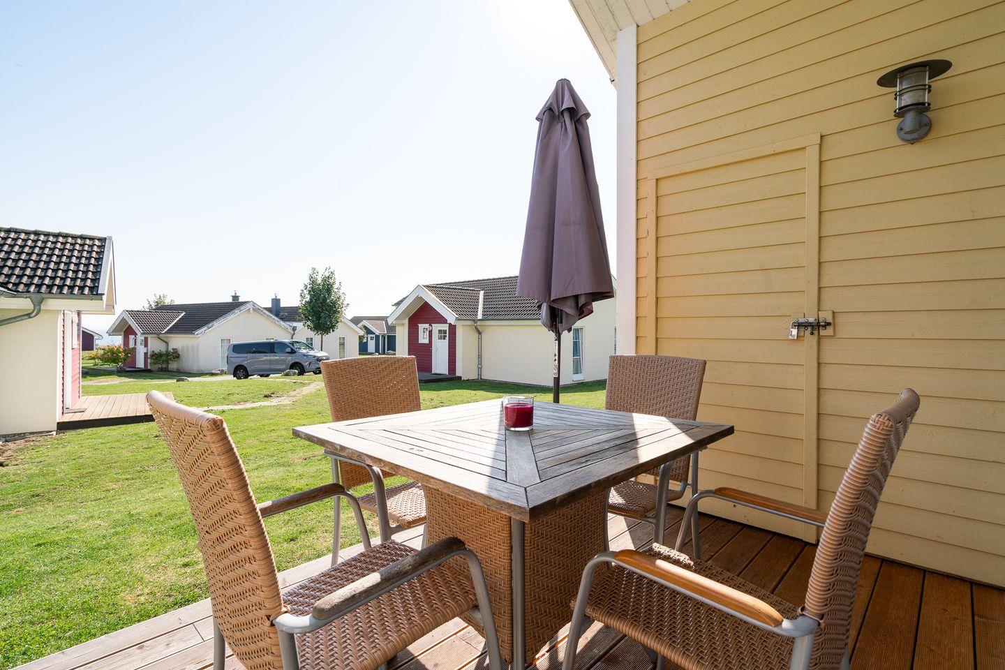 Die gemütliche Bungalowhälfte Nr.58 liegt in der Strandpark-Anlage und ist für 4 Personen geeignet. Vom geräumigen Wohnraum mit Kamin und offener Küche haben Sie Zugang zur Terrasse. Die Küche ist mit Spülmaschine, Backofen und Herd ausgestattet. Im ersten Schlafraum steht ein Doppelbett, im zweiten Schlafraum stehen zwei Einzelbetten. Das Bad ist mit Badewanne, Sauna und Waschmaschine ausgestattet. WLAN ist inklusive.