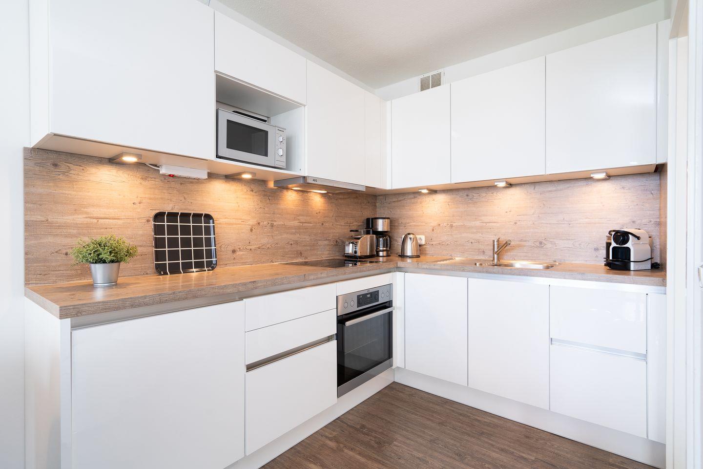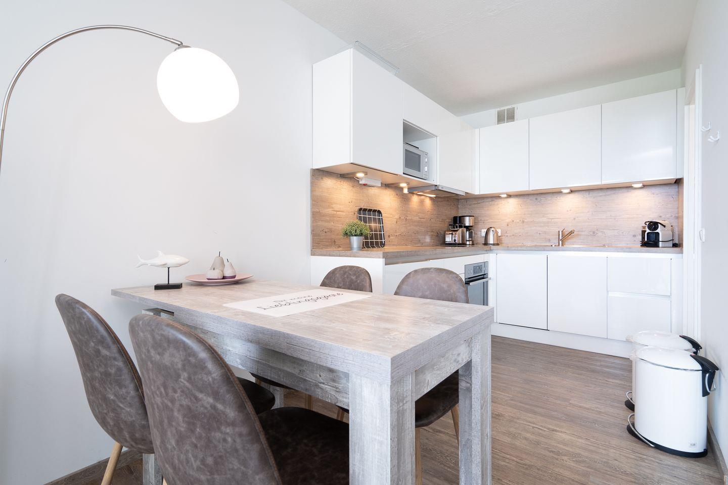 Die geschmackvolle Ferienwohnung Nr. 627 befindet sich in der 2. Etage. Der Balkon in Nord-Ostlage bietet einen schönen Ostseeblick. Es gibt eine offene Küche mit Spülmaschine, Backofen, Herd und Essbereich. Der Schlafbereich mit Doppelbett ist zum Wohnraum hin offen, kann aber optisch getrennt werden. Im Wohnbereich befindet sich zudem eine Schlafcouch. Es gibt ein modernes, innenliegendes Duschbad. WLAN ist inklusive. Zum Strand sind es nur wenige Fußschritte.