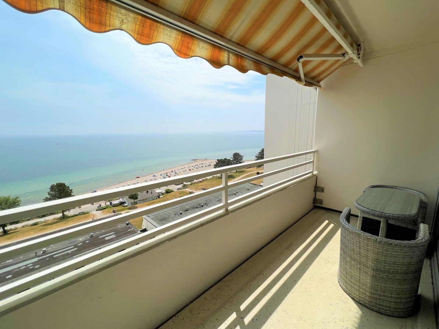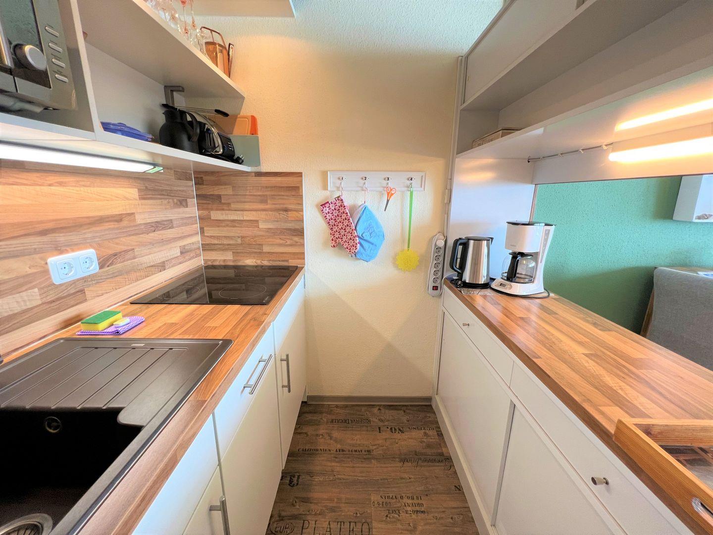 Diese 2-Raum-Ferienwohnung hat einen Balkon in Süd-Ost-Lage mit wunderbarem Blick auf die Ostsee. Die Küche ist mit Spülmaschine und Herd ausgestattet und mit einer Durchreiche zum kombinierten Wohn- und Essbereich hin offen. Im maritim eingerichteteten Wohnraum steht eine Schlafcouch. Der Schlafraum ist mit zwei Einzelbetten ausgestattet, die man nicht zusammenschieben kann. Das Duschbad hat ebenfalls ein Klappfenster. PKW-Stellplatz inklusive. Zum Strand sind es nur wenige Fußschritte.