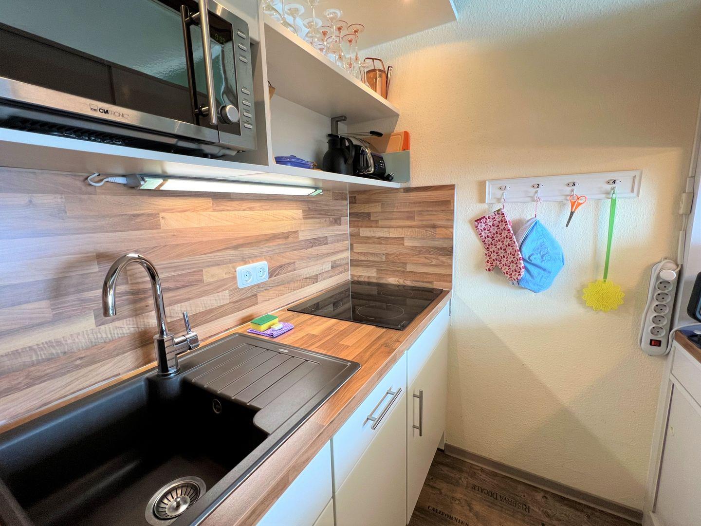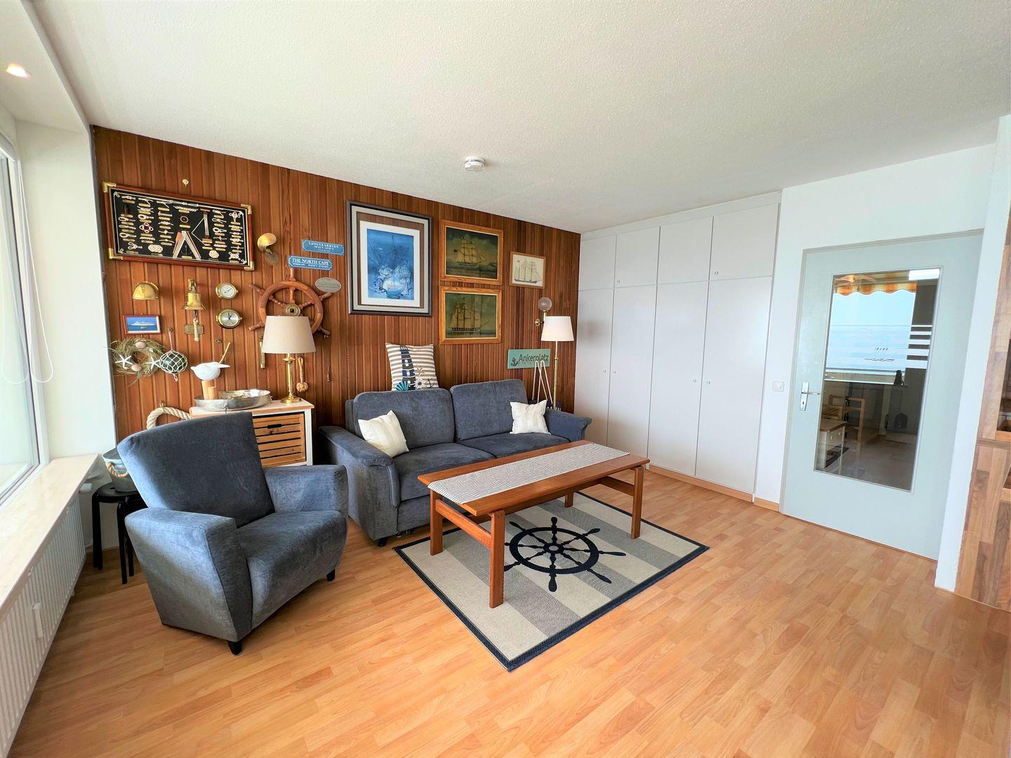 Diese 2-Raum-Ferienwohnung hat einen Balkon in Süd-Ost-Lage mit wunderbarem Blick auf die Ostsee. Die Küche ist mit Spülmaschine und Herd ausgestattet und mit einer Durchreiche zum kombinierten Wohn- und Essbereich hin offen. Im maritim eingerichteteten Wohnraum steht eine Schlafcouch (140 cm x 200 cm). Der Schlafraum mit Klappfenster ist mit zwei Einzelbetten ausgestattet, die man nicht zusammenschieben kann (2x 90 cm x 200 cm). Das Duschbad hat ebenfalls ein Klappfenster. PKW-Stellplatz inklusive. Zum Strand sind es nur wenige Fußschritte.