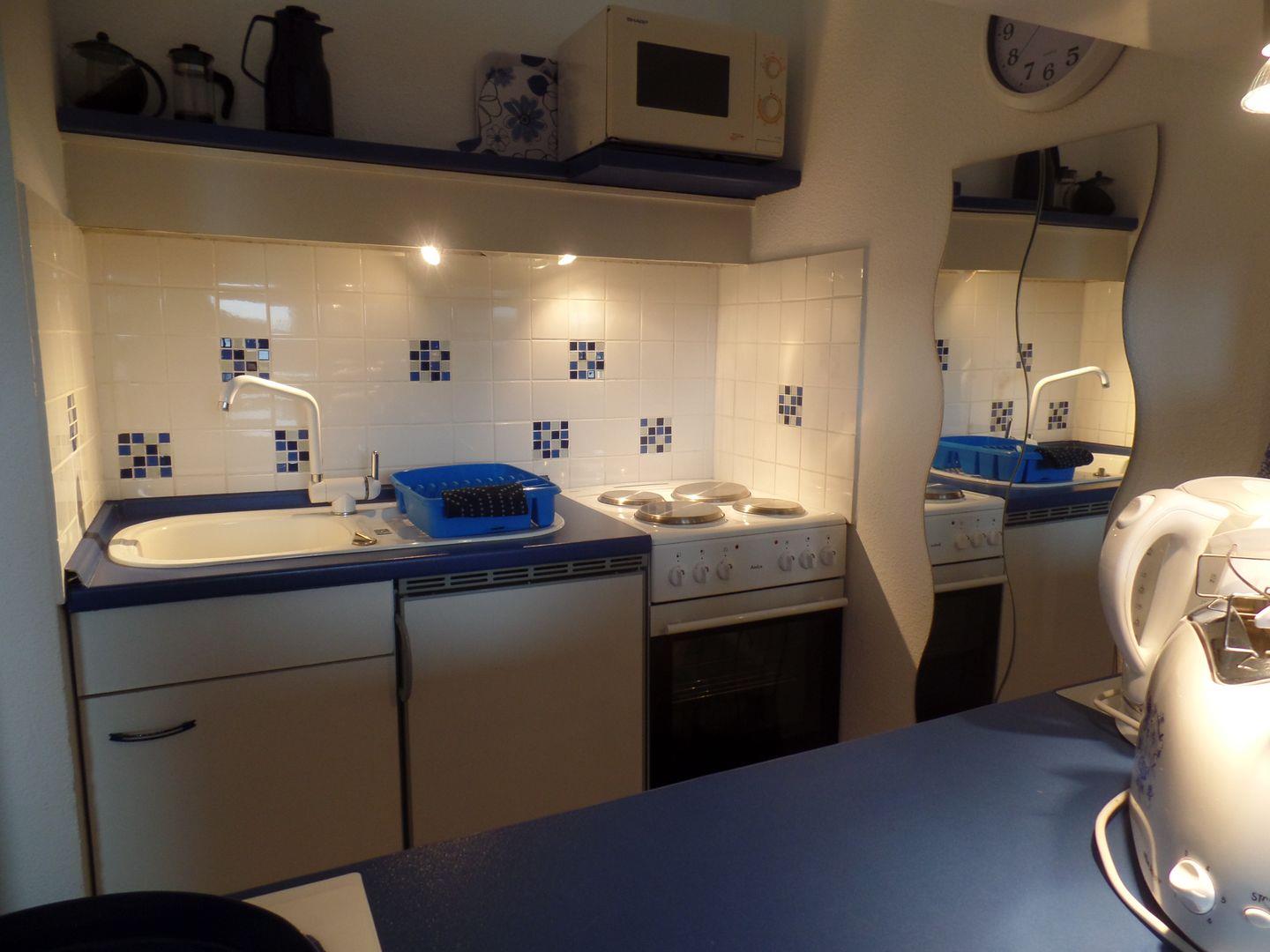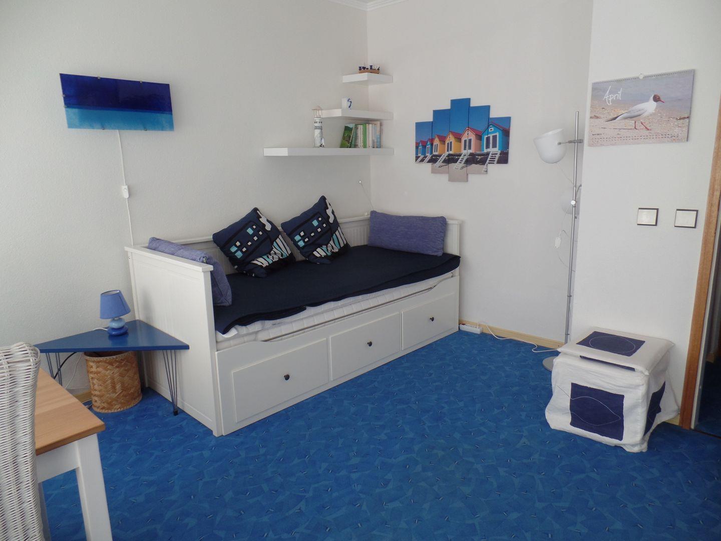 diese 1-Raum-Nichtraucher-Ferienwohnung liegt in der Apartmentanlage Ferienpark in der 7. Etage mit einem möblierten Süd-West-Balkon und seitlichem Ostseeblick. Die Wohnung ist ca. 33 qm groß und für 2 Personen geeignet. Im kombinierten Wohn- und Schlafraum steht ein Tandembett (2 Matratzen á 80 cm x 200 cm) zum Ausziehen. Die kleine Küche ist mit Backofen und Herd ausgestattet und mit einer Durchreiche zum Wohn-/Schlafbereich hin offen. Das modernisierte Duschbad ist innenliegend. Zum Strand sind es nur wenige Gehminuten. PKW-Stellplatz inklusive.