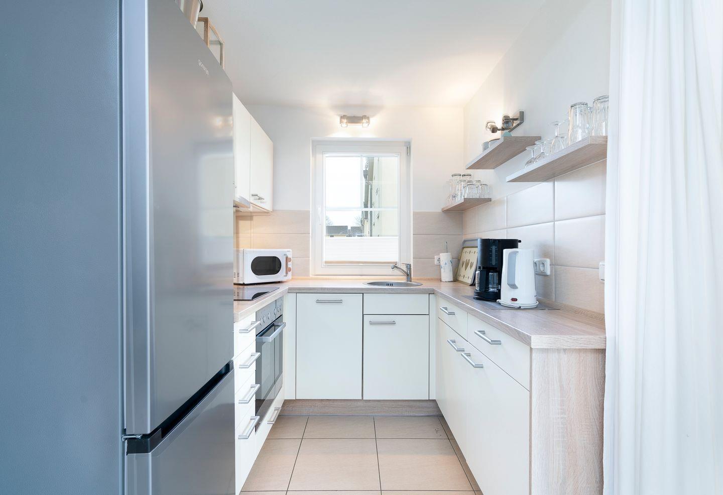 die schöne Ferienwohnung des Typs "Brigantine" liegt im Parterre mit Terrasse. Auf 70 qm stehen Ihnen 2 Schlafräume (1 x mit Doppelbett und 1 x mit 2 Einzelbetten) und ein geräumiger Wohn- und Essraum mit Pelletofen und Zugang zur Terrasse zur Verfügung. Der Pelletofen sorgt für gemütliche Stunden mit Freunden und Familie. Das Bad ist mit Dusche und Sauna ausgestattet. Der Komfort einer eigenen Sauna wird sehr von unseren Wintergästen geschätzt. Die zum Wohn- und Essbereich hin offene Küche ist mit Geschirrspülmaschine, Herd und Backofen gut ausgestattet. Eine eigene Waschmaschine gehört ebenfalls zur Ausstattung. Die Beheizung erfolgt über Elektroheizungen und den Pelletofen.