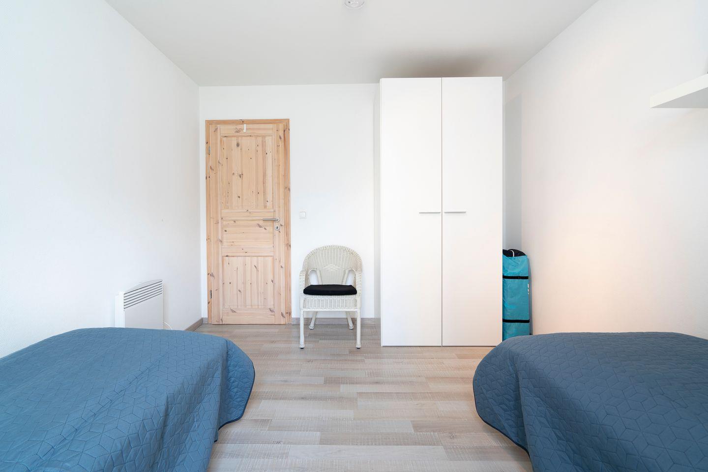 Die schöne Ferienwohnung „Brigantine“ Nr. 24 liegt im Parterre eines Quattrobungalows, hat aber einen separaten Eingang. Vom geräumigen Wohn- und Essraum mit Pelletofen haben Sie Zugang zur Terrasse. Die offene Küche ist mit Spülmaschine, Backofen und Herd ausgestattet, zudem steht eine Waschmaschine zur Verfügung. Der erste Schlafraum hat ein Doppelbett, im zweiten stehen zwei Einzelbetten. Das Bad ist mit Dusche und Sauna ausgestattet. WLAN ist inklusive.