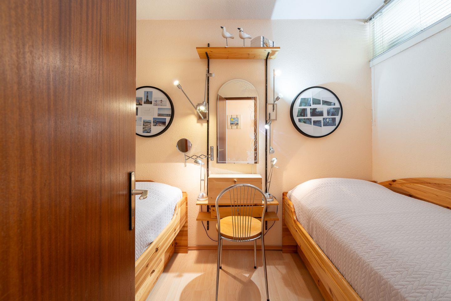 die Wohnung befindet sich im Hochhaus in der 3. Etage mit Balkon in Süd-Ost-Lage und wunderbarem Ostseeblick. Vom kombinierten Wohn- und Essbereich haben Sie Zugang zum Balkon. Die kleine Küchenzeile ist zum Wohn-/Essbereich mit einer Durchreiche hin offen und mit Backofen, Herd und Mikrowelle ausgestattet. Im innenliegenden Schlafraum befinden sich zwei Einzelbetten (jeweils 90 cm x 190 cm), die man nicht zusammenschieben kann. Im Schlafraum ist kein Platz, um ein Kinderreisebettchen aufzustellen. Eine weitere Schlafmöglichkeit bietet das Schlafsofa im Wohnbereich. Das Duschbad ist innenliegend. Ohne eine Straße überqueren zu müssen, ist der Strand in wenigen Schritten zu erreichen. PKW-Stellplatz im Parkdeck, es führen Treppen von dort aus zur Wohnung. Über einen Seiteneingang gelangt man zum Fahrstuhl für ebenerdiges Be-und Entladen.