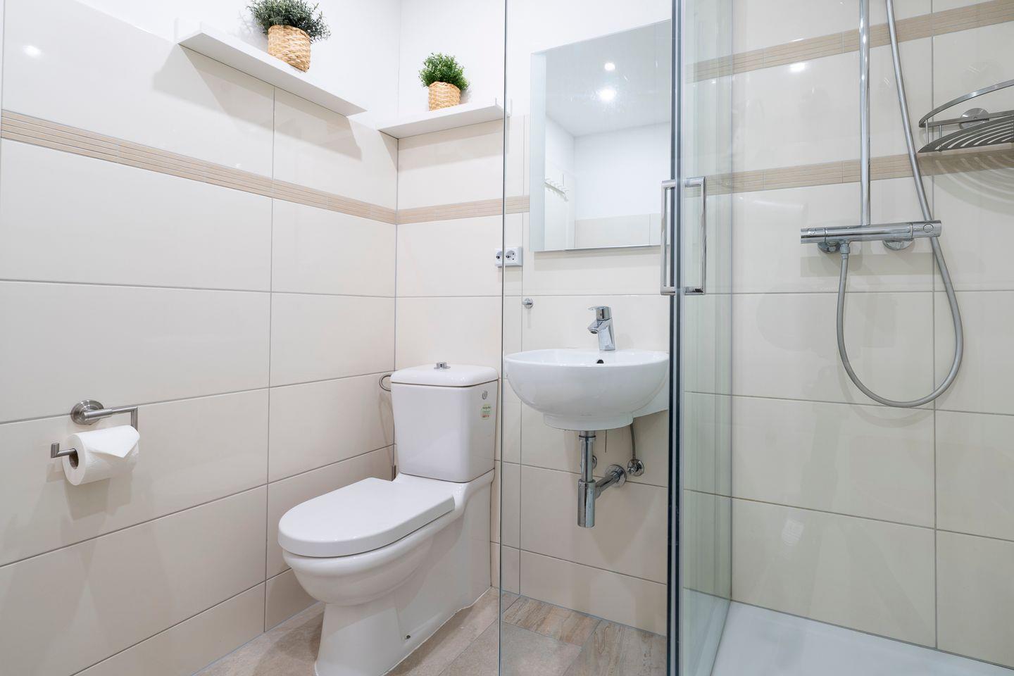 Das frisch renovierte, innenliegende Badezimmer verfügt über eine große Regendusche, Handtuchheizung, Föhn, Waschbecken, WC und lässt somit keine Wünsche offen. Die Handtücher können Sie selber mitbringen oder sich kostenpflichtig ausleihen.