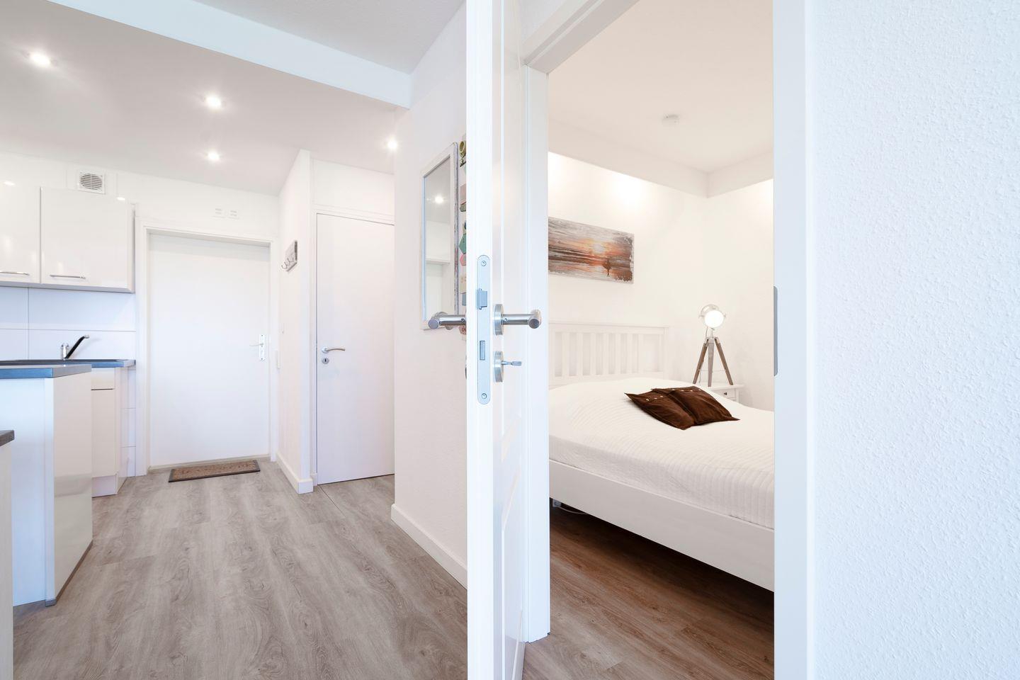 Die Ferienwohnung bietet ein Schlafzimmer mit einem großen bequemen Doppelbett (160 cm x 200 cm) und ein Gästezimmer mit einem ausziehbaren Gästebett (160 cm x195 cm). Beide Zimmer sind mit Verdunklungsrollos für einen hohen Schlafkomfort versehen.