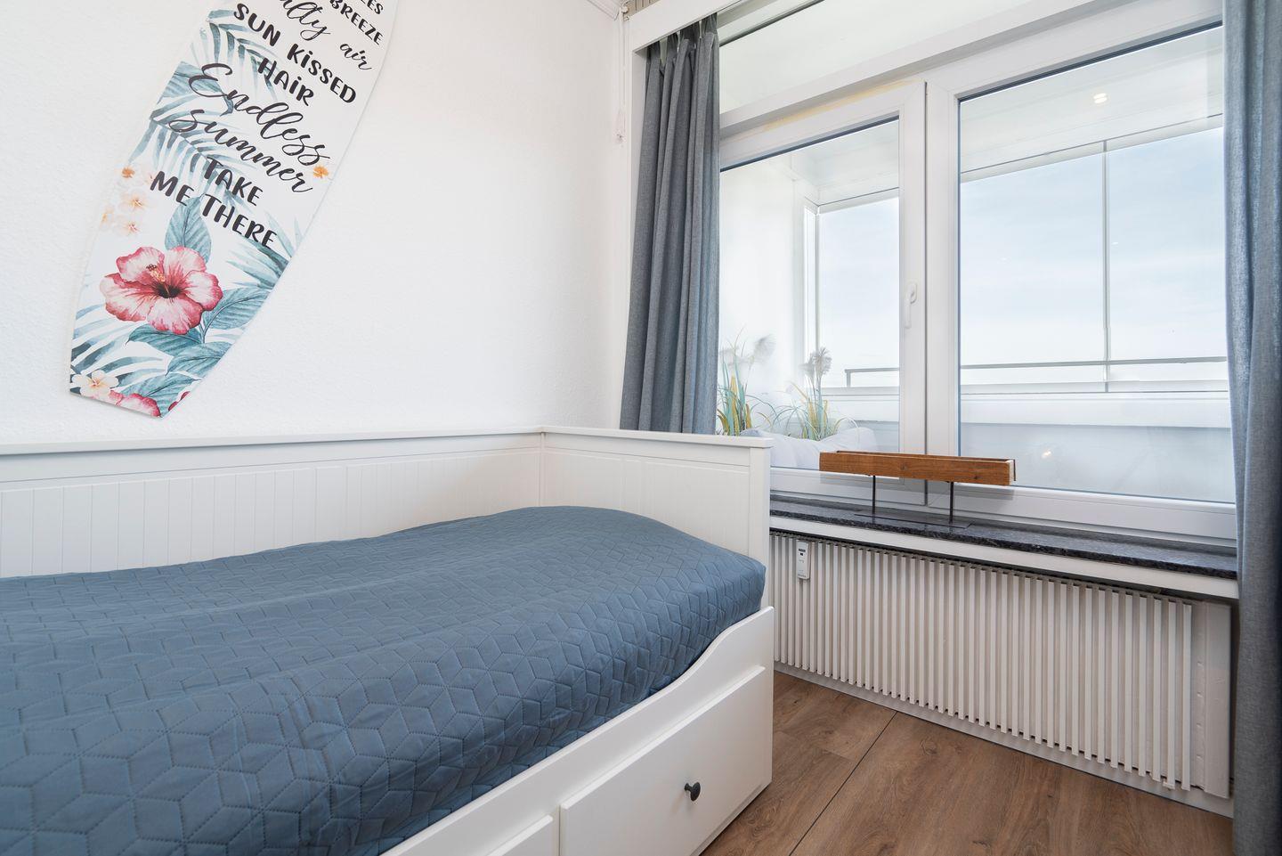 Die moderne 3-Raum-Ferienwohnung befindet sich im 14. Stock mit Balkon und einem atemberaubenden Blick über die Lübecker Bucht. Die top ausgestattete Küche ist zum kombinierten Wohn- und Essbereich hin offen. Im ersten Schlafzimmer steht ein Doppelbett, im zweiten Schlafzimmer steht ein ausziehbares Doppelbett. Das moderne Duschbad ist innenliegend. Im Abstellraum steht eine Waschmaschine. WLAN wird geboten. Die Nutzung des Schwimmbads in der Anlage ist inklusive.