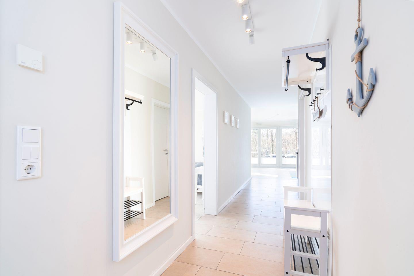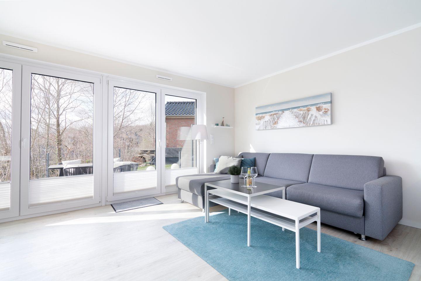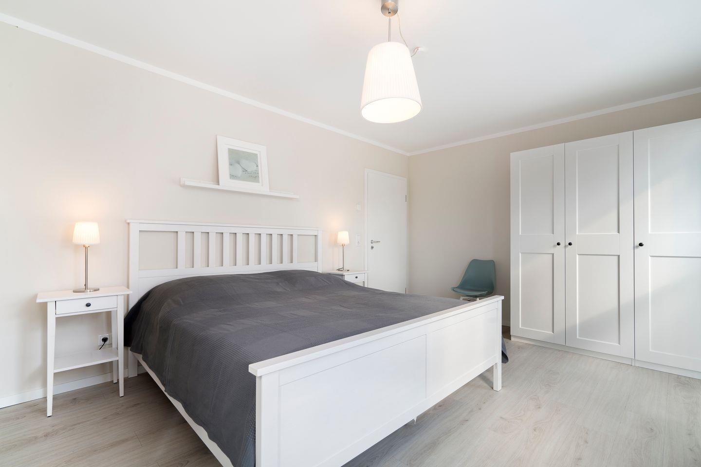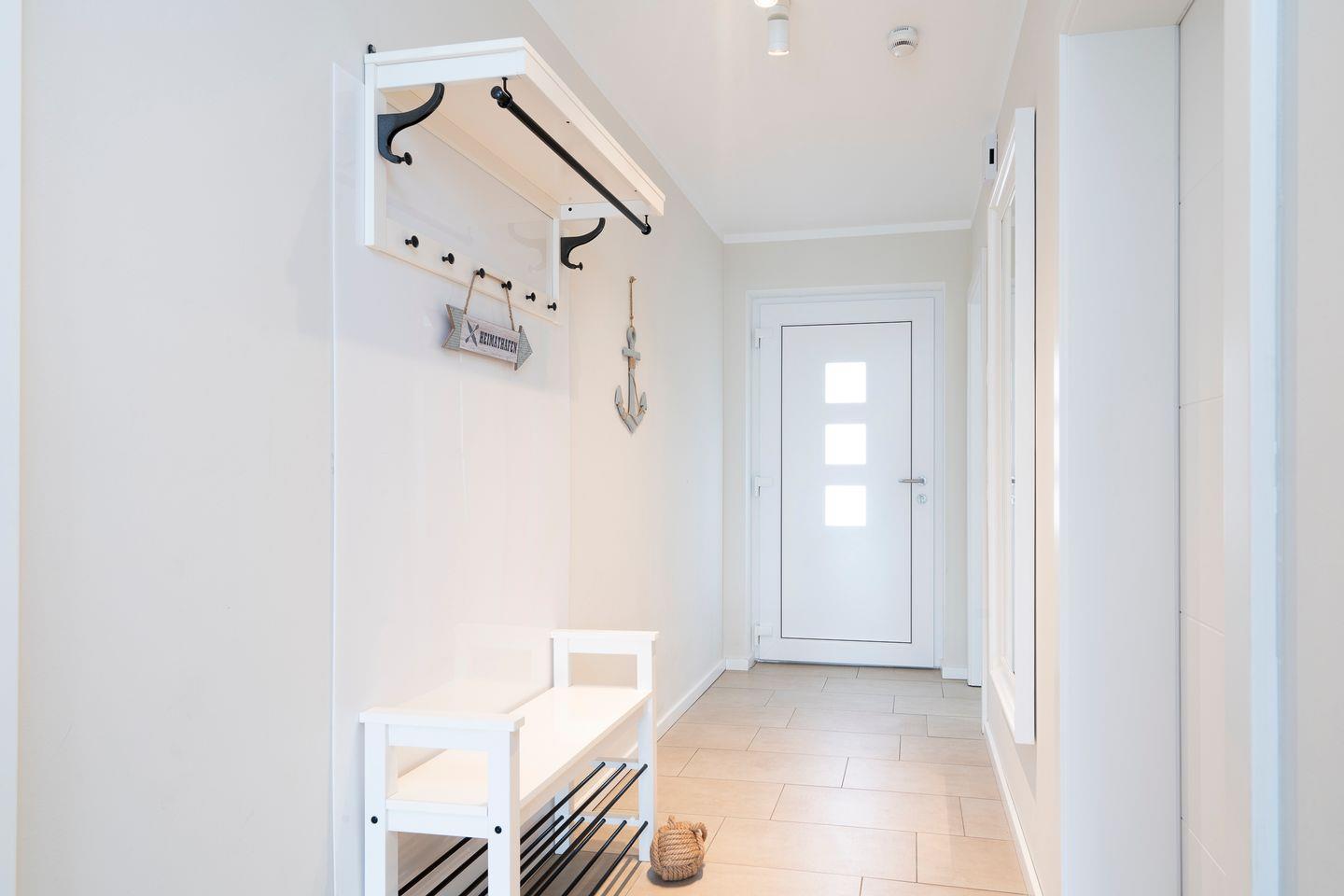 Die top-moderne EG-Wohnung befindet sich in einem Neubau und wurde erst in 2018 fertig gestellt. Im Schlafraum befindet sich ein Doppelbett (2 x 0,9m x 2m). Die offene Küche ist in den Wohnraum integriert und komplett ausgestattet. Im Wohnbereich befindet sich eine Schlafcouch für die 3te Person und der Zugang zur Terrasse. Das Bad ist mit WC und Dusche. Die Wohnung wird angenehm per Fußbodenheizung geheizt. In der Nähe befindet sich die Bahn, diese ist aber bei geschlossenen Fenstern (3-Fach-Verglasung) nicht zu hören. Das Objekt ist gut isoliert. Zum Strand sind es ca. 10 Gehminuten.