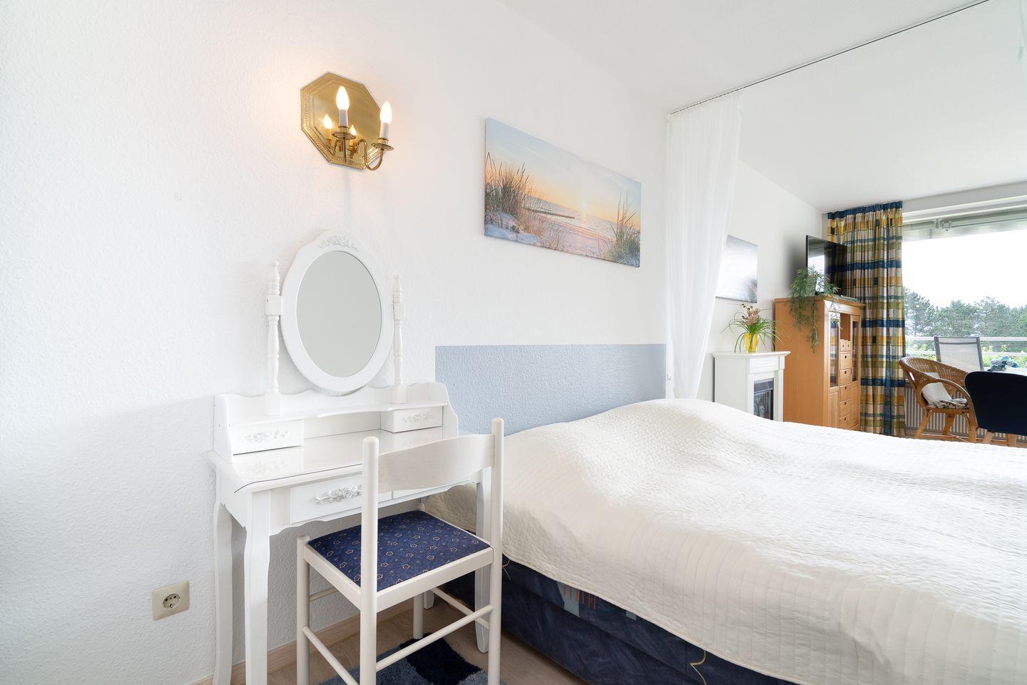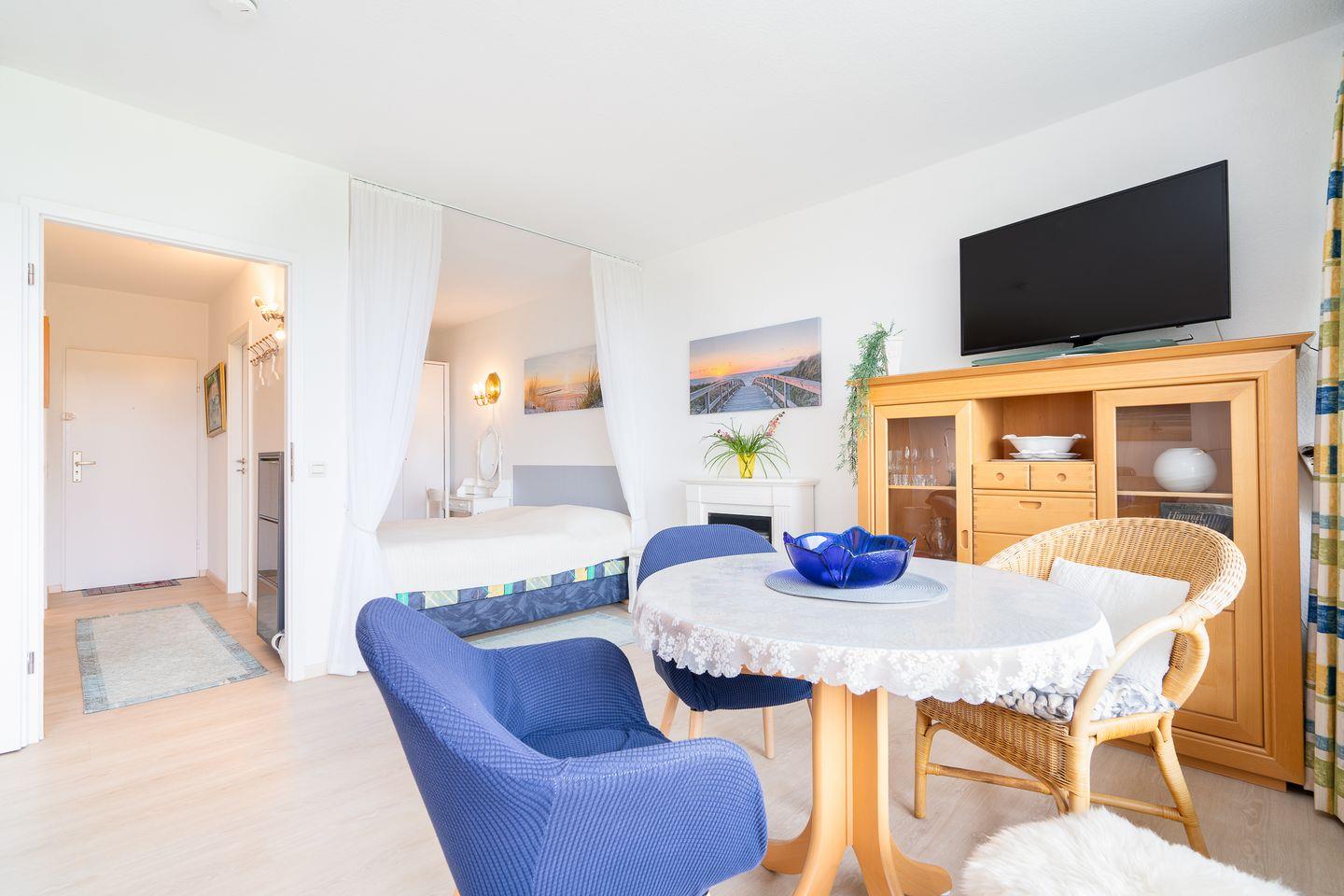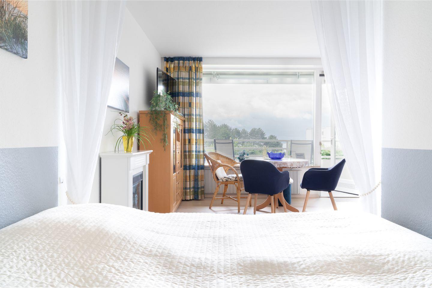 Die Ferienwohnung Nr. 564 wurde 2021 renoviert und zu einem geräumigen 1-Raum-Appartment umgebaut. Vom gemütlichen Wohnraum haben Sie Zugang zum Balkon im Süd-Ost-Lage. Die Küche ist in den Wohnraum integriert und mit Spülmaschine, Backofen und Herd ausgestattet. Die Wohnung verfügt über ein Doppelbett, das optisch mit einem Vorhang vom Wohnraum abgetrennt werden kann. Es gibt ein innenliegendes Duschbad. PKW-Stellplatz inklusive. Zum Strand sind es nur wenige Fußschritte.