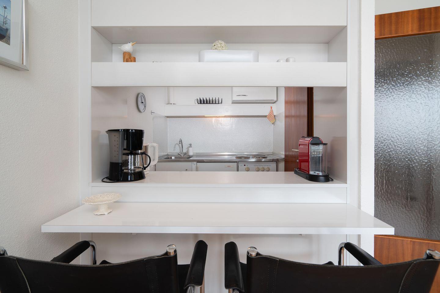 hier erwartet Sie eine 2-Zimmer-Ferienwohnung für 2 Personen, mit Balkon in Süd-Ostlage und Ostseeblick über die erste Reihe Flachbauten hinweg. Vom kombinierten Wohn- und Essbereich haben Sie Zugang zum Balkon. Die Küche ist mit Backofen und Herd ausgestattet und mit einer Durchreiche zum Wohn-/Essbereich offen. Im Schlafraum steht ein französisches Bett (160 x 200 cm)mit Einstieg über das Fußende. Das Duschbad hat ein Oberlicht zum Lüften, ebenso wie der kleine Schlafraum. Zum flachabfallenden Sandstrand geht man nur 2 Minuten und braucht dabei keine Strasse zu überqueren. PKW-Stellplatz inklusive.