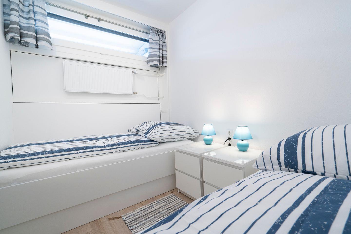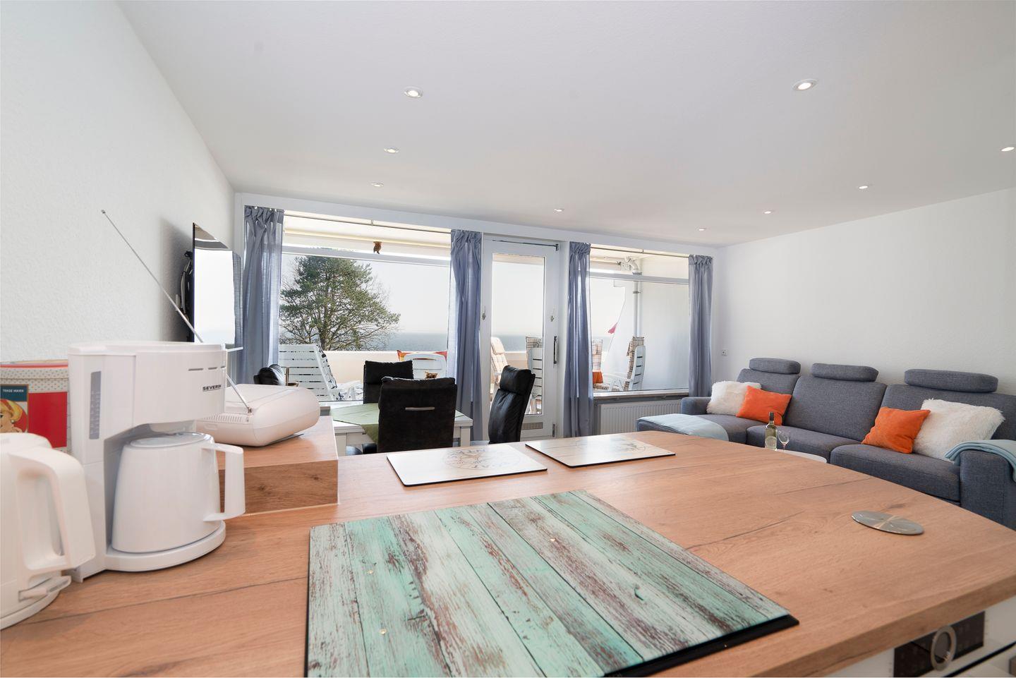 Herzlich Willkommen in der 3-Raum-Ferienwohnung Nr.52. Genießen Sie vom großzügigen Balkon den uneingeschränkten Meerblick und genießen Sie Ihren Urlaub in der modern und geschmackvoll eingerichteten Wohnung. Die voll ausgestattete Küche ist in den kombinierten Wohn- und Essbereich integriert. Im ersten Schlafraum stehen 2 Einzelbetten, die man nicht zusammenschieben kann. Im zweiten Schlafraum steht ein Etagenbett. Das moderne Duschbad ist innenliegend. WLAN ist inklusive.