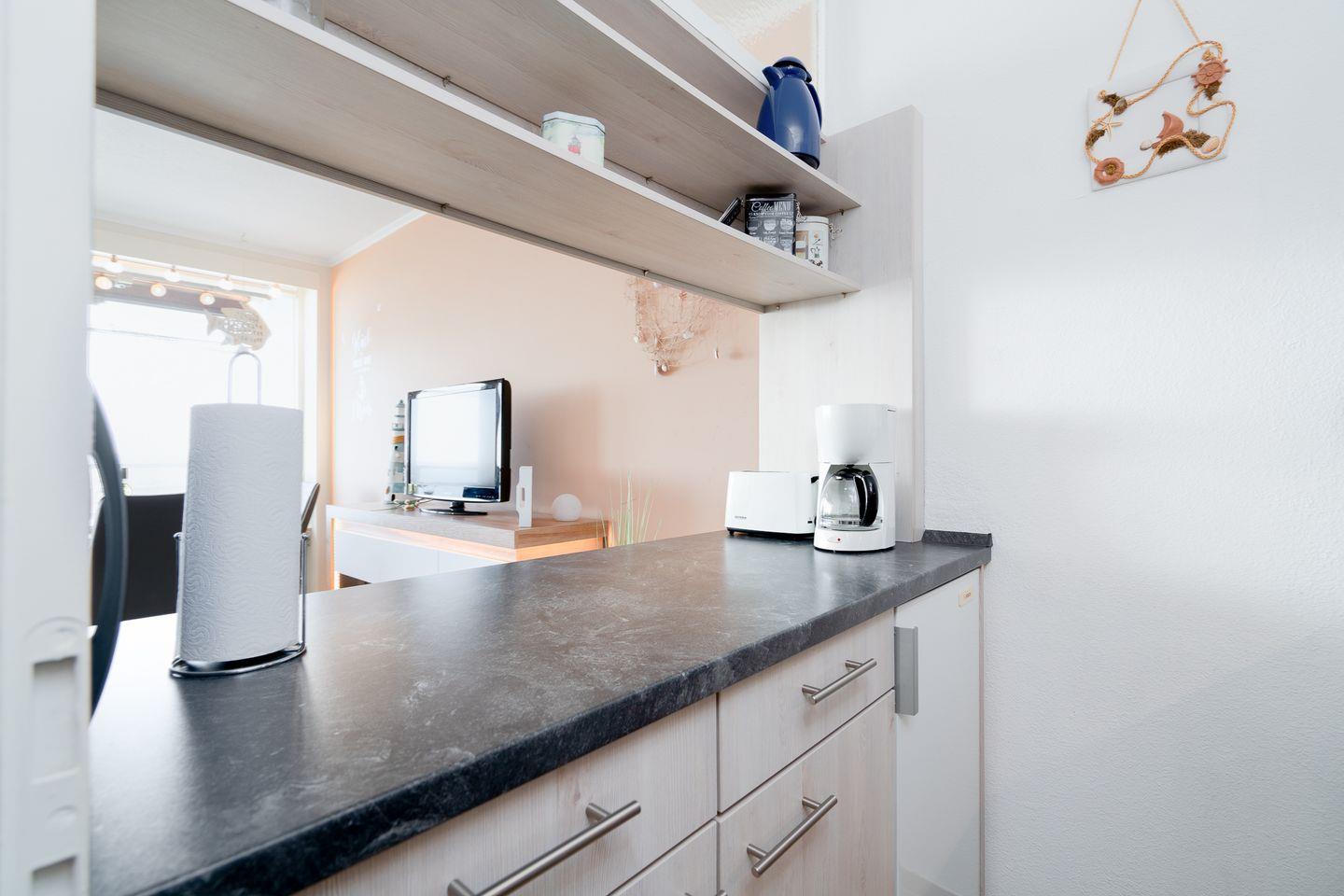 Die helle und gemütliche 2-Raum Ferienwohnung Nr. 354 mit Balkon liegt in der 10. Etage und hat einen schönen Fernblick auf die Lübecker Bucht. Die mit Backofen, Herd und Spülmaschine ausgestattete Küche ist mit einer Durchreiche zum kombinierten Wohn- und Essbereich hin offen. Im Schlafraum stehen zwei Einzelbetten. Das Sofa im Wohnraum bietet einen Schlafplatz für eine Person. Das modernisierte Duschbad ist innenliegend. Zum Strand sind es nur wenige Fußschritte. WLAN ist inklusive.