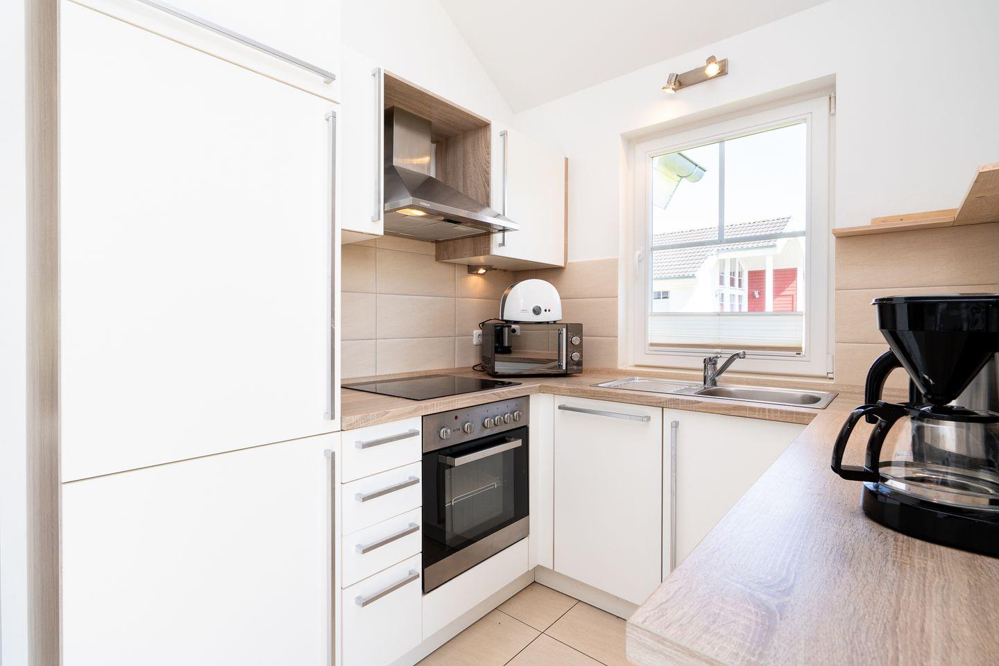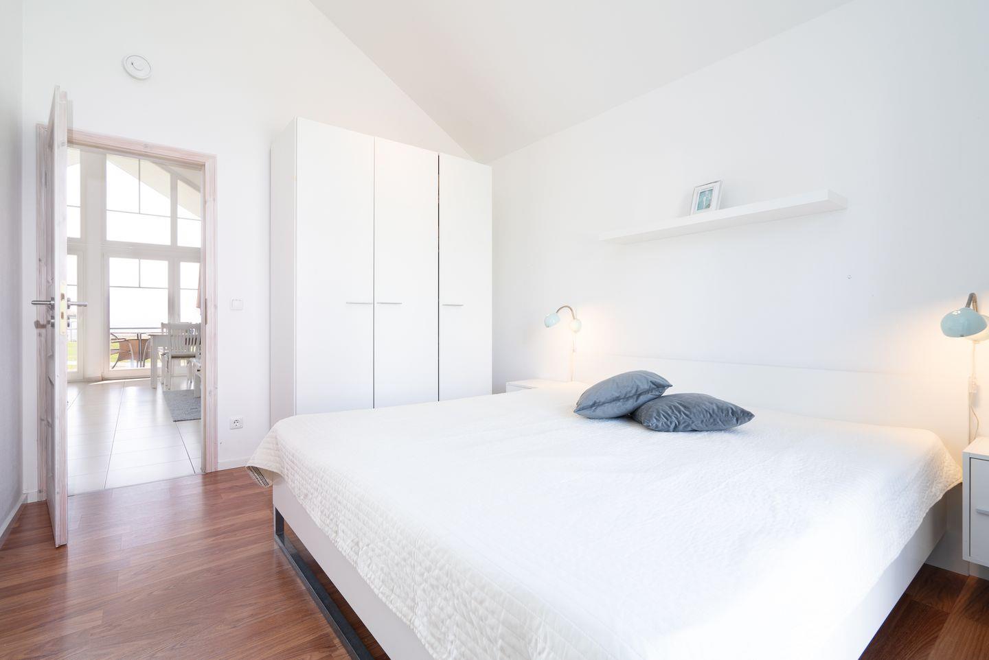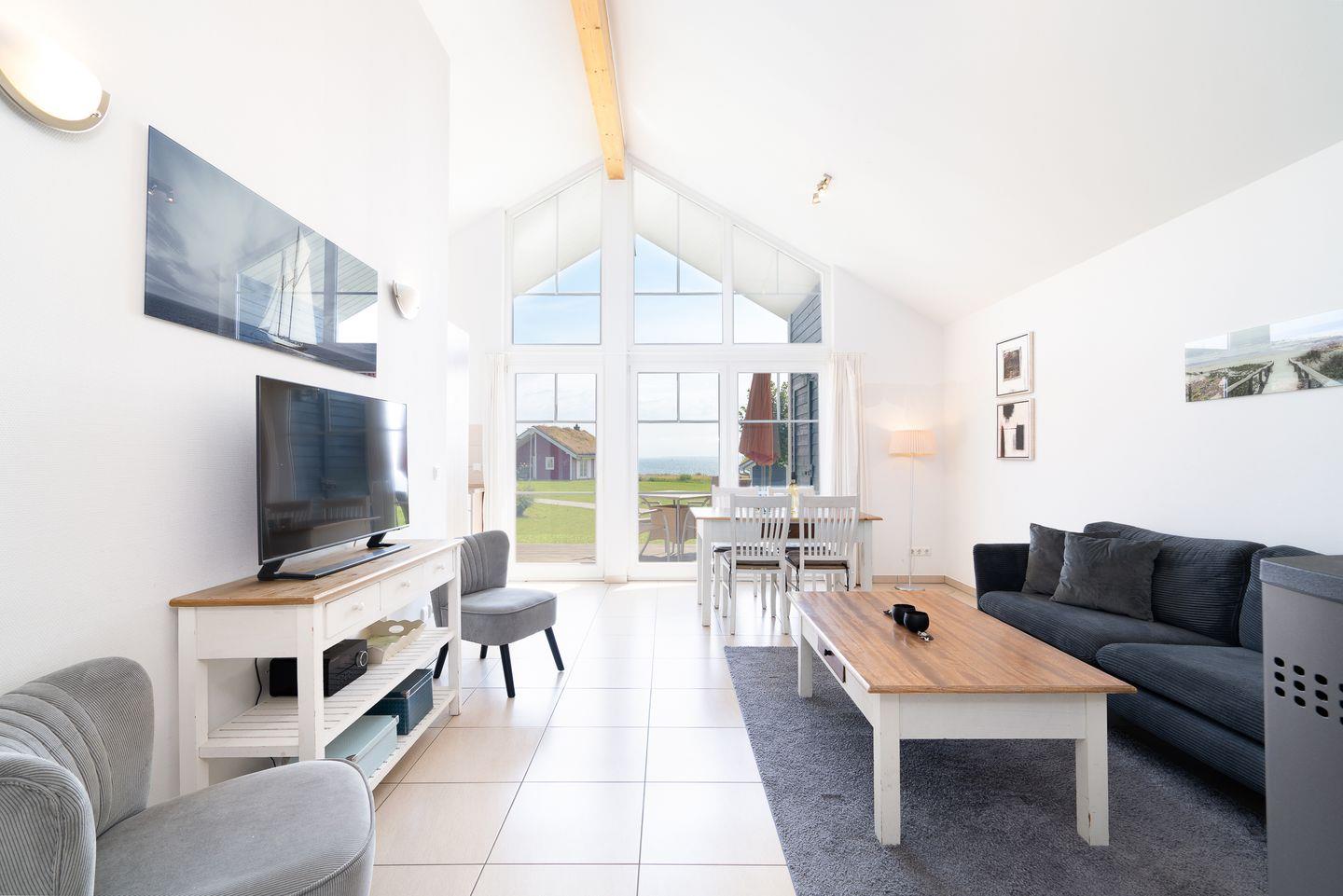 Auf 70 qm stehen Ihnen auf einer Ebene zwei Schlafräume und ein geräumiger Wohn- und Essraum mit Kamin und Zugang zur Terrasse mit Meerblick zur Verfügung. Der Kaminofen sorgt für gemütliche Stunden mit Freunden und Familie. Die zum Essbereich hin offene, moderne Küche ist mit Geschirrspülmaschine, Herd und Mikrowelle voll ausgestattet. Im ersten Schlafraum steht ein Doppelbett (2x 90 x 200 cm), im zweiten zwei Einzelbetten (jeweils 90 x 200 cm). Im Bad finden Sie die Sauna, Waschmaschine, sowie eine Badewanne. Der Komfort einer eigenen Sauna wird sehr von unseren Wintergästen geschätzt.