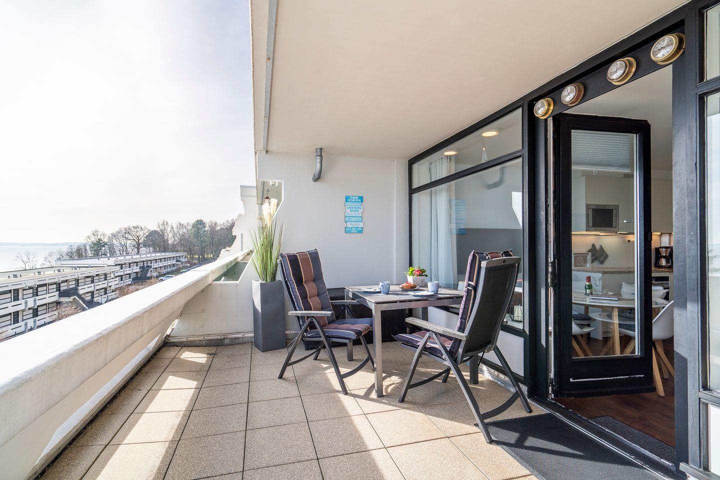 Diese helle und schöne 2-Raum-Ferienwohnung ist das ideale Feriendomizil für Familien. Vom großen Balkon mit Strandkorb können Sie einen wunderbaren Blick auf die Ostsee über die erste Reihe der Flachbauten hinweg genießen. Die moderne Küche ist mit Spülmaschine, Backofen und Herd voll ausgestattet und in den kombinierten Wohn- und Essbereich integriert. Der Schlafraum mit Oberlicht ist mit einem gemütlichen Doppelbett (2x 90 cm x 200 cm) ausgestattet und hat ein zusätzliches TV-Gerät. Viel Stauraum bietet das separate Ankleidezimmer. Der geschmackvoll und freundlich eingerichtete Wohn- und Essbereich ist zudem mit einem Schlafsofa ausgestattet (Liegefläche 120 cm x 200 cm). Das moderne Badezimmer ist innenliegend und hat eine bodentiefe Dusche. Ohne eine Straße zu überqueren sind es zum Strand nur wenige Fußschritte. PKW-Stellplatz inklusive.