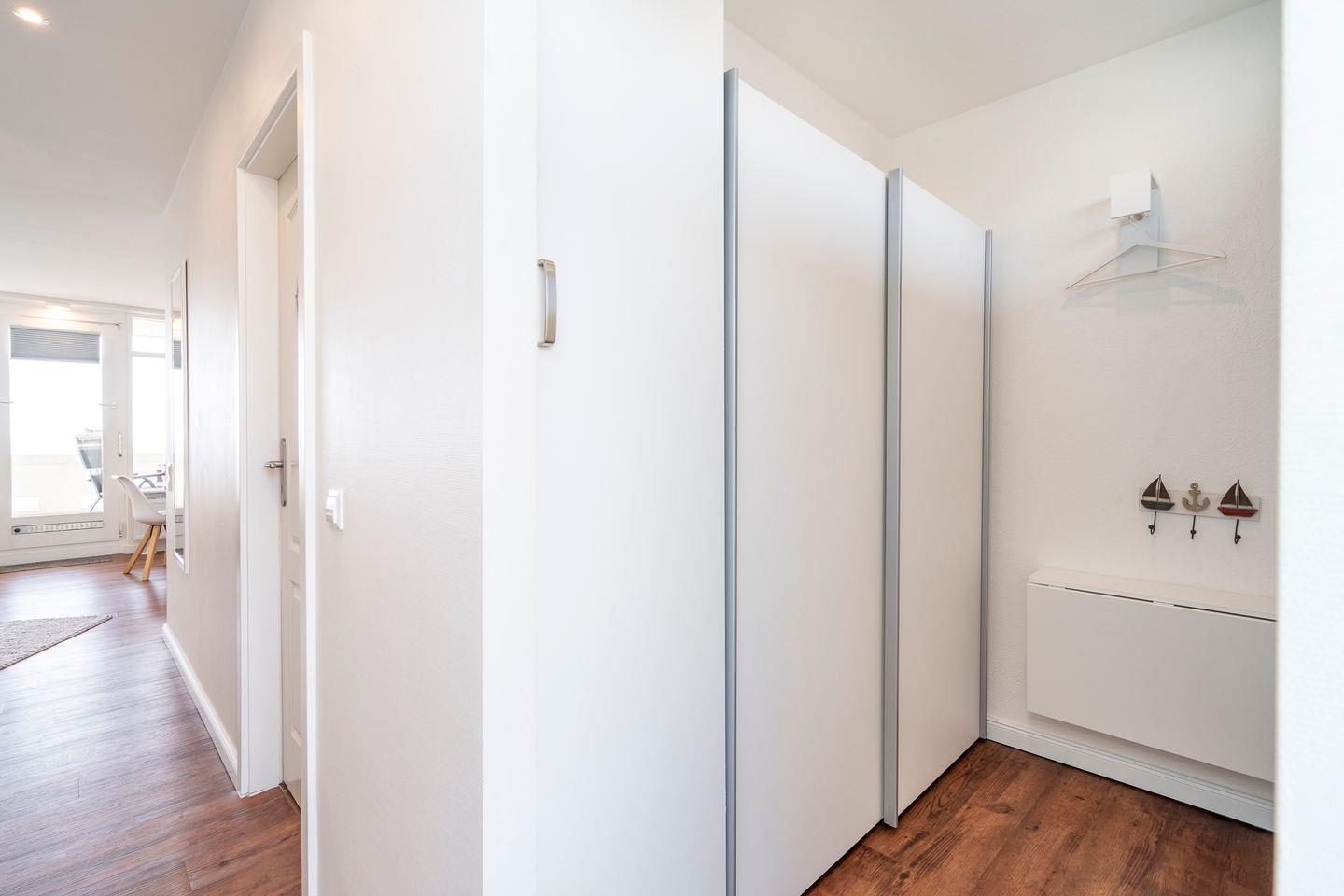 Die modern und geschmackvoll eingerichtete Ferienwohnung Nr. 212 ist ideal für Ihren Familienurlaub. Vom Balkon mit Strandkorb haben Sie einen schönen Meerblick. Die mit Spülmaschine, Backofen und Herd ausgestattete Küche ist in den Wohn-/Essbereich integriert. Der Schlafraum mit einem gemütlichen Doppelbett hat ein zusätzliches TV-Gerät. Der Wohn-/Essbereich verfügt über ein Schlafsofa. Das Bad mit bodentiefer Dusche ist innenliegend. Zum Strand sind es nur wenige Fußschritte. WLAN inklusive.