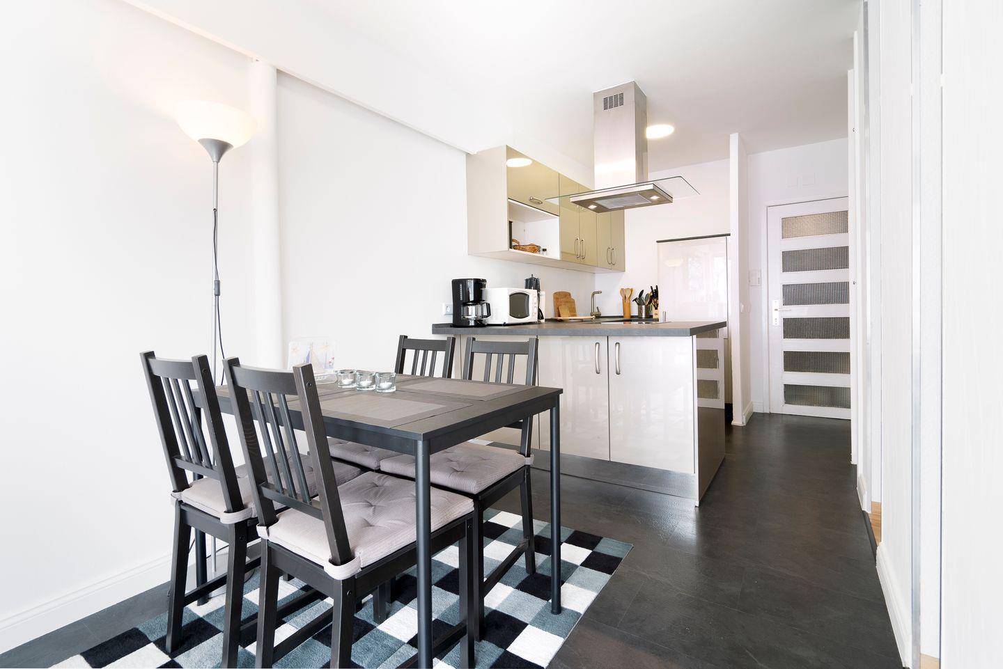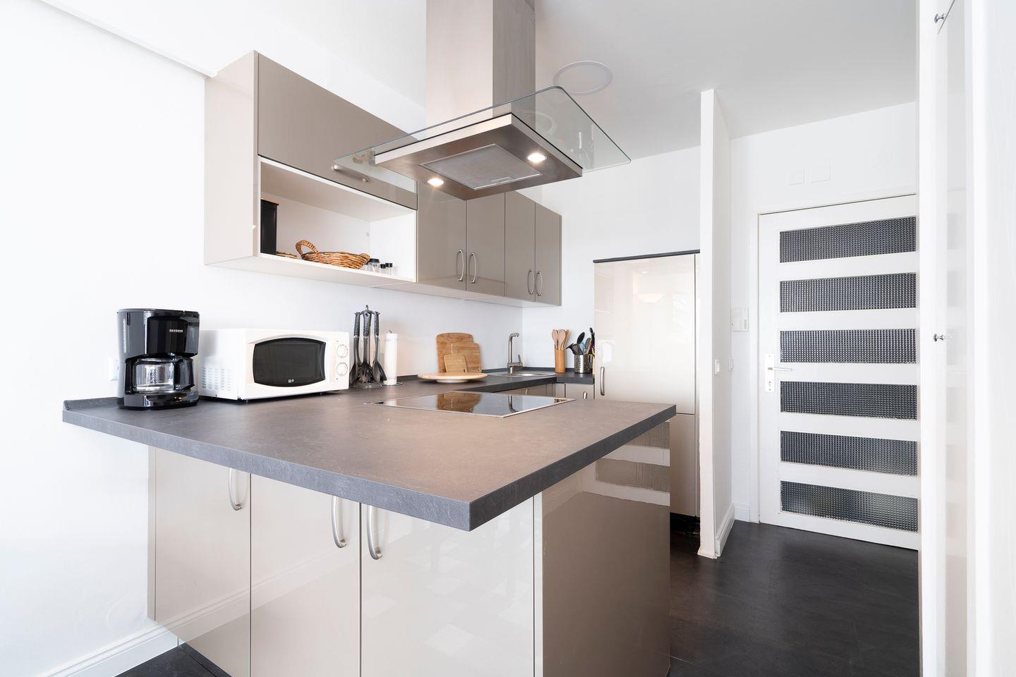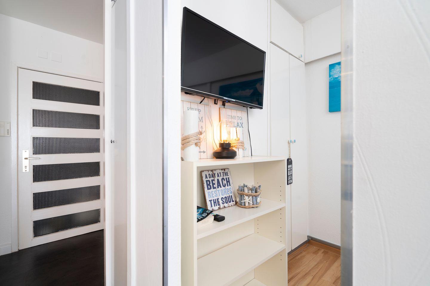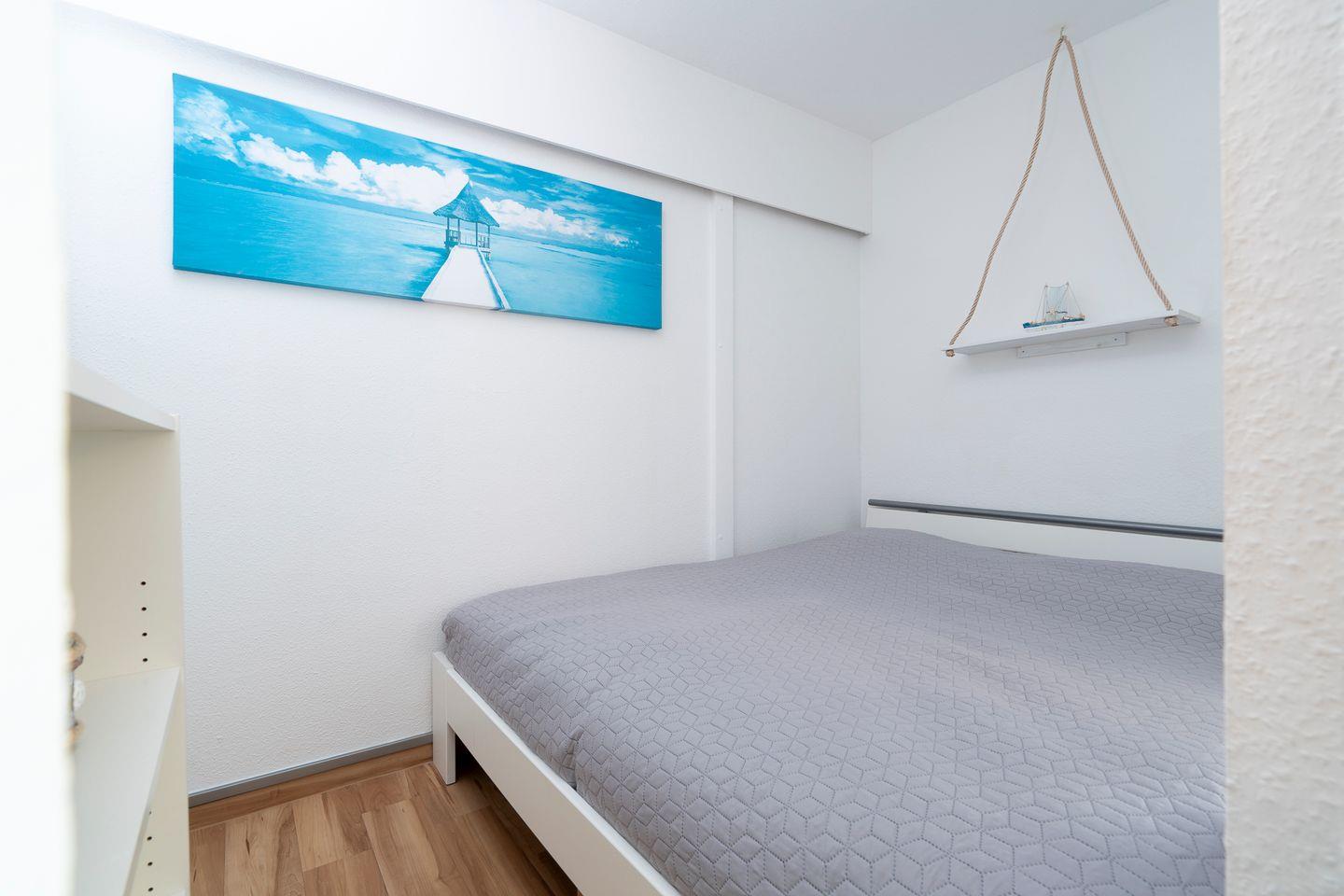 Genießen Sie auf dem großzügigen Balkon in Südlage die Sonne und lassen Sie Ihre Seele baumeln! Vom kombinierten Wohn- und Essbereich mit offener Küche haben Sie Zugang zum möblierten Balkon. Die Küche ist mit Spülmaschine, Backofen und Herd ausgestattet. Das Schlafzimmer verfügt über ein bequemes Doppelbett (160 cm x 200 cm) und ist optisch durch Raumteiler vom Rest der Wohnung getrennt. Auf dem Schlafsofa (140 cm x 200 cm) im Wohnbereich ist Platz für zwei weitere Personen. Das moderne Bad ist mit einer bodentiefen Dusche und einem kleinen Fenster ausgestattet. Zum Strand sind es nur wenige Gehminuten. PKW-Stellplatz inklusive.