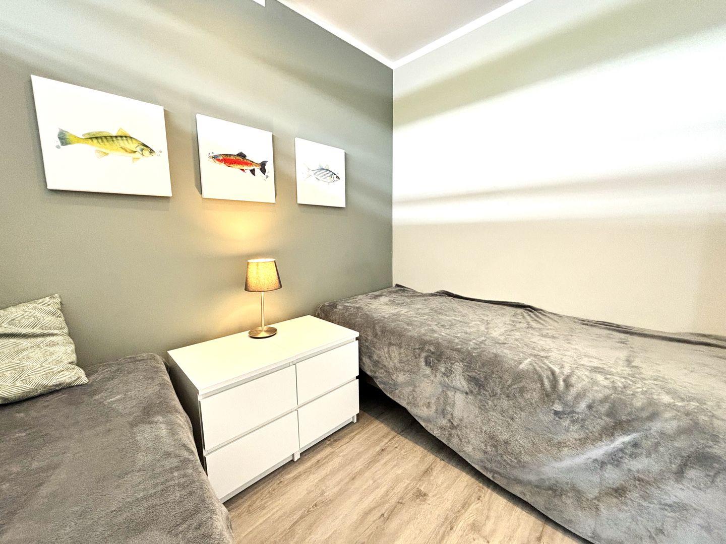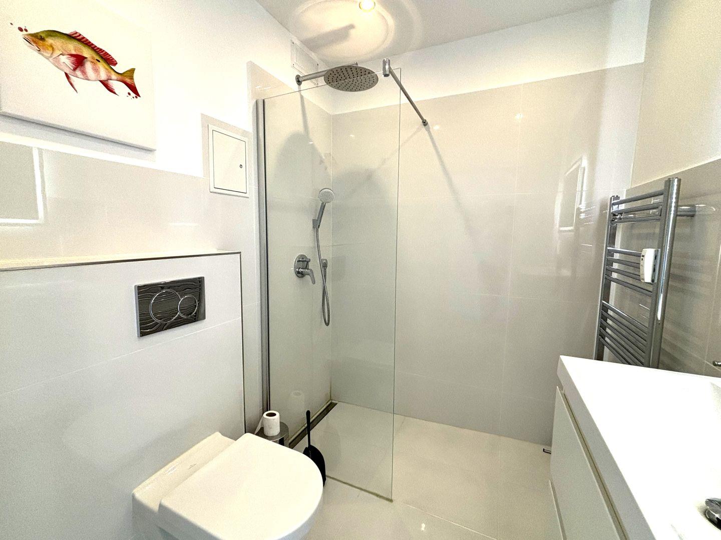 Herzlich Willkommen in der 3-Raum-Ferienwohnung "Baywatch"! Diese schöne Wohnung liegt in der 1. Reihe der Flachbauten (2. Etage) und hat somit einen herrlichen Blick auf die Ostsee. Der gemütliche und stimmig eingerichtete Wohn- und Essbereich mit angrenzendem Balkon lädt zu entspannten Urlaubstagen ein. Ein bequemes Doppelbett (160 cm x 200 cm) steht optisch getrennt in einer Nische ebenfalls im Wohn- und Essbereich. Die moderne Küche ist mit Spülmaschine, Backofen und Herd ausgestattet und ist in den Wohn-/Essbereich integriert. Im Schlafzimmer stehen zwei Einzelbetten (jeweils 90 x 190 cm), die man nicht zusammenschieben kann. Die Wohnung verfügt über ein abgetrenntes Ankleidezimmer. Das hell geflieste und moderne Badezimmer hat eine bodentiefe Dusche und ist innenliegend. Ohne eine Straße zu überqueren sind es zum Strand nur wenige Fußschritte. PKW-Stellplatz inklusive. Ihre Fahrräder können Sie sicher in der zur Wohnung gehörenden Kellerbox abstellen.