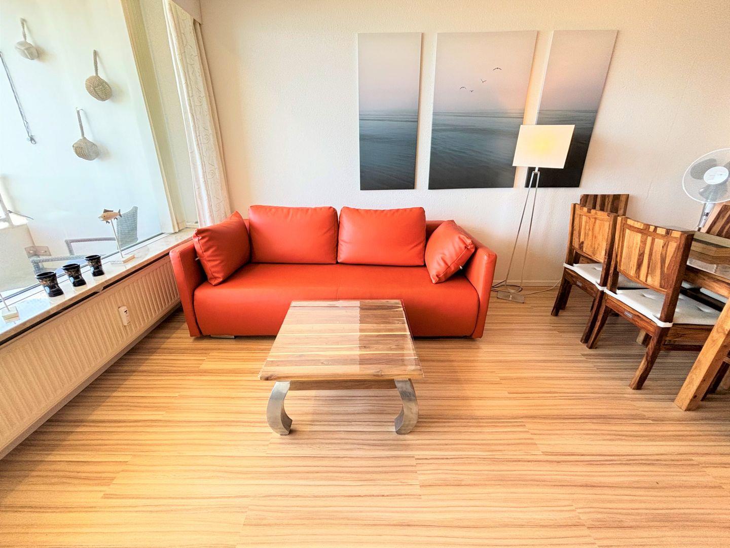 Diese schöne 2-Raum-Wohnung liegt im 4. Stock und hat vom Balkon aus einen tollen Blick auf die Ostsee. Die mit Backofen und Herd ausgestattete Küche ist in den kombinierten Wohn- und Essbereich integriert. Von hier aus gelangen Sie auch auf den Balkon in Süd-West-Lage. Vom Wohnraum durch ein Schiebeelement abgetrennt, befindet sich eine Schlafkammer mit einem Doppelbett und einem Fenster zum Balkon hin. Aufwachen und die Ostsee sehen - so kann der Tag beginnen! Im zweiten Schlafraum steht ebenfalls ein Doppelbett, so dass die Wohnung für 4 Personen geeignet ist. Das moderne Duschbad ist innenliegend. Zum Strand sind es nur wenige Fußschritte. Der PKW-Stellplatz im Parkdeck ist nur über eine Treppe erreichbar, ein Seiteneingang führt zum Fahrstuhl zum ebenerdigen Be-und Entladen.