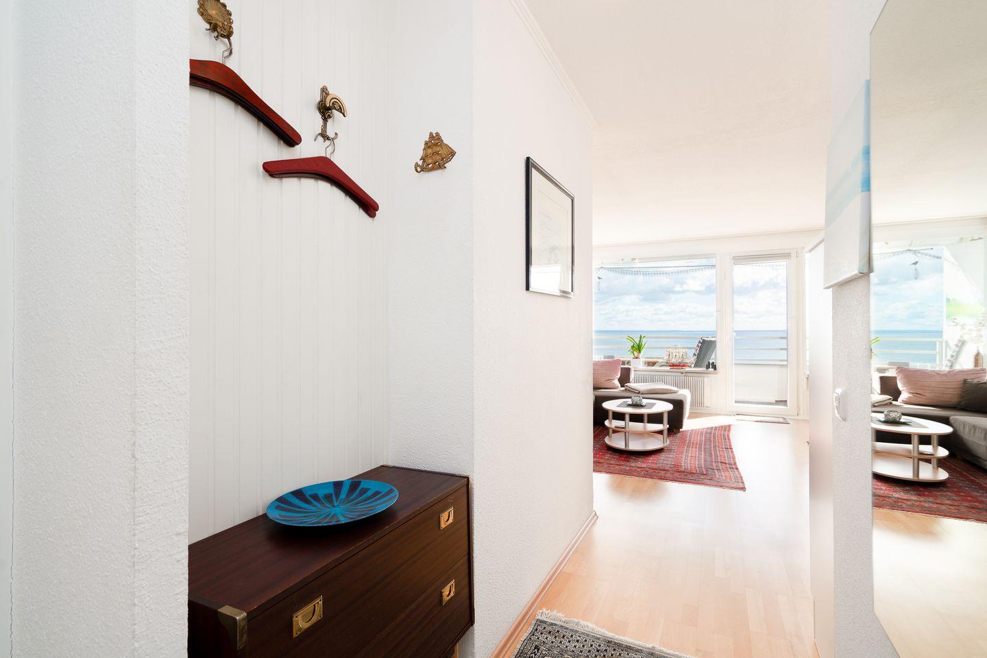 In dieser schönen und hellen 2-Raum-Wohnung ist der Name Programm! Von der 7. Etage haben Sie vom Balkon aus einen herrlichen Blick über die Ostsee und die Lübecker Bucht. Auch das Schlafzimmer mit bequemen Boxspringbett (180 cm x 200 cm) hat Ostseeblick - aufwachen und das Meer sehen, so kann der Tag beginnen! Auf dem Sofa mit Schlaffunktion ist Platz für eine weitere Person, hier können Sie enstspannt mit Blick aufs Wasser den Tag begrüßen oder ausklingen lassen. Die moderne Küche ist mit Backofen, Herd und Spülmaschine ausgestattet und ist in den Wohn- und Essbereich integriert. Das in Weißtönen gehaltene Duschbad ist innenliegend. Zum Strand sind es nur wenige Fußschritte. PKW-Stellplatz für die Zeit Ihres Aufenthaltes inklusive.