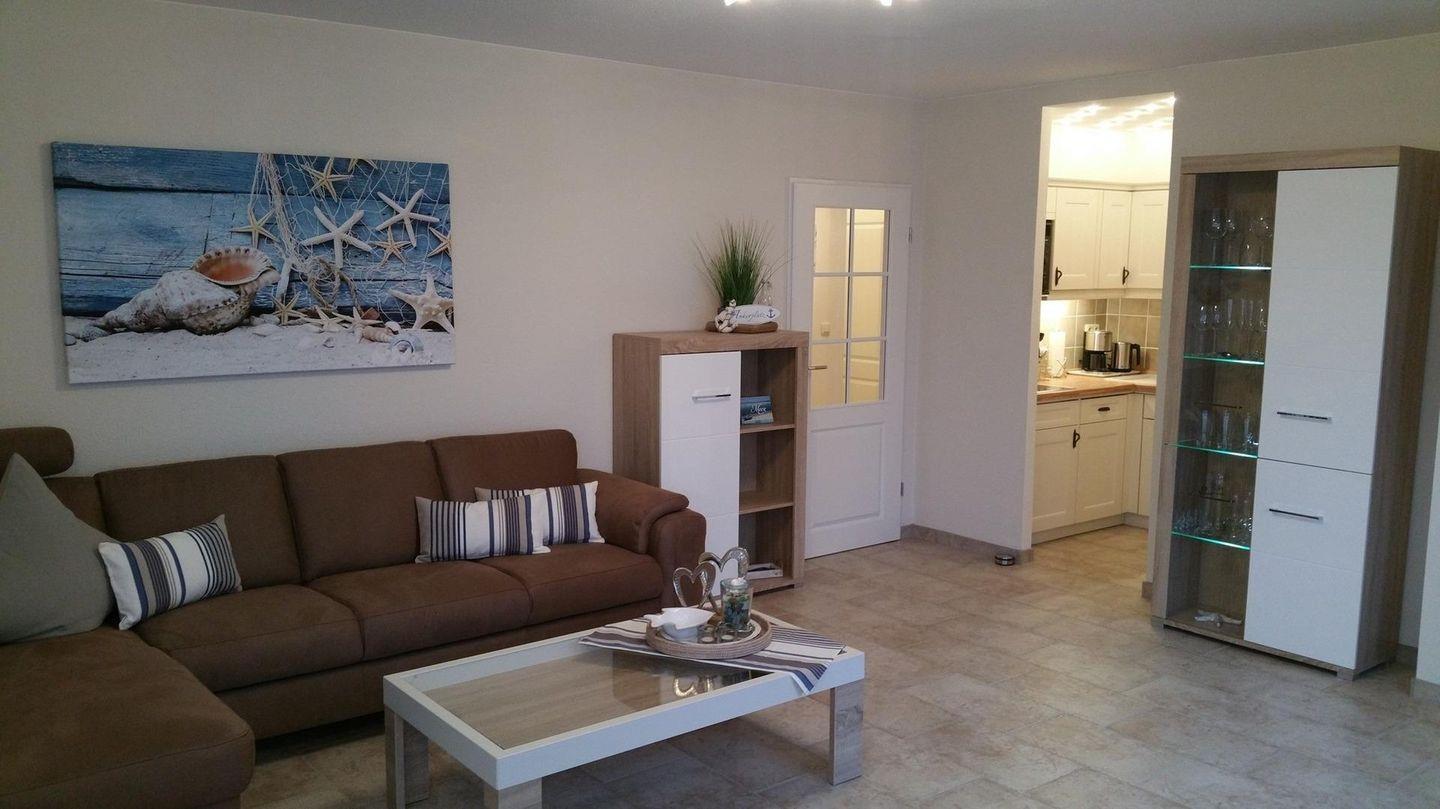 Die lichtdurchfluteten Räume sind liebevoll eingerichtet. Warme Naturtöne verbinden sich mit praktischen und angenehmen Ausstattungsdetails. Ein moderner und trotzdem gemütlicher Tisch mit bequemen Stühlen lädt zum Meersehen, Essen und Spielen ein. Danach entspannen Sie sich auf der bequemen Relax-Garnitur.