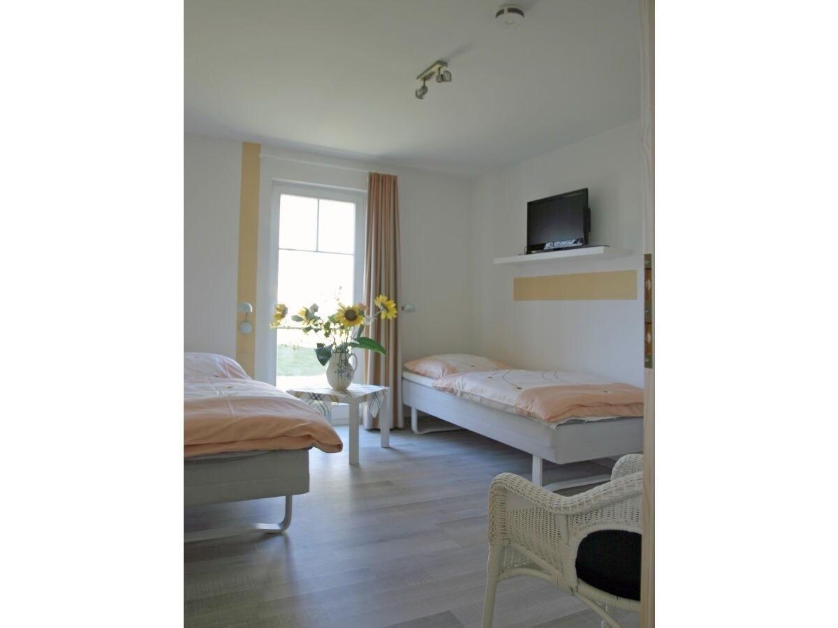 Die Wohnung "Meerkieker" App 28 befindet sich im Erdgeschoß eines Quatrohauses im Hansapark-Resort. Die sehr schön gestaltete Wohnung verfügt über zwei Schlafzimmer (1 x Boxspringbett als Doppelbett und 1 x 2 Boxspringbetten als Einzelbetten), eine offene Küche mit kombiniertem Wohn- und Essbereich, Pelletofen, Duschbad und mit eigener Sauna für z.Bsp. einen entspannten Wellnesstag. Ein grosser neuer Esstisch mit vier neuen bequemen Stühlen laden zu einem ausführlichen Frühstück ein. Auch ein neuer Wohnzimmertisch fügt sich elegant in den gemütlichen Wohnbereich ein. Ein neuer großer Flachbildschirm, der an der Wand befestigt ist, wird Ihnen unterhaltsame Stunden bereiten.